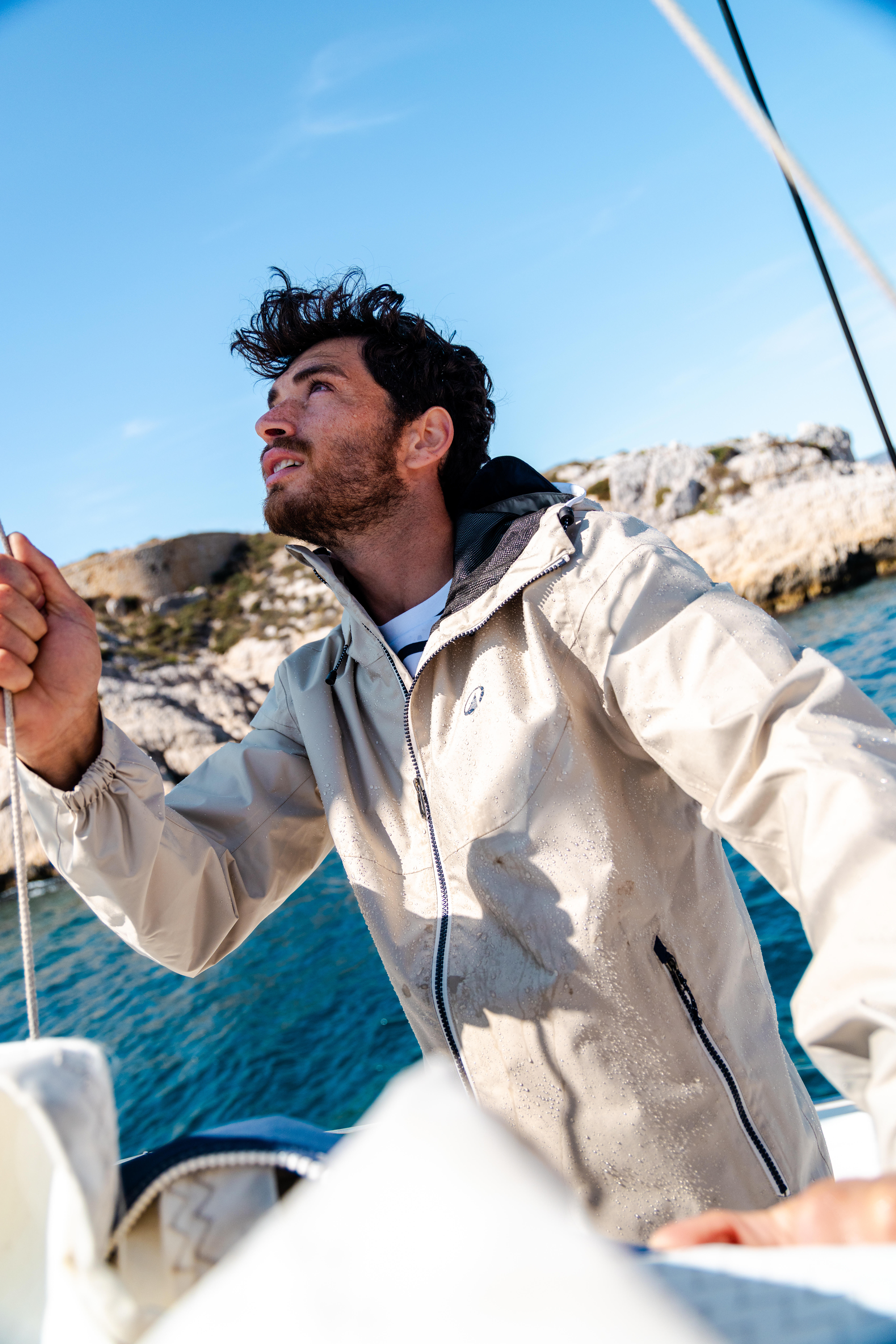 Αυτό το ανδρικό αδιάβροχο μπουφάν είναι σχεδιασμένο για παράκτια ιστιοπλοΐα με βροχερό, θυελλώδη καιρό και δυνατούς ανέμους.