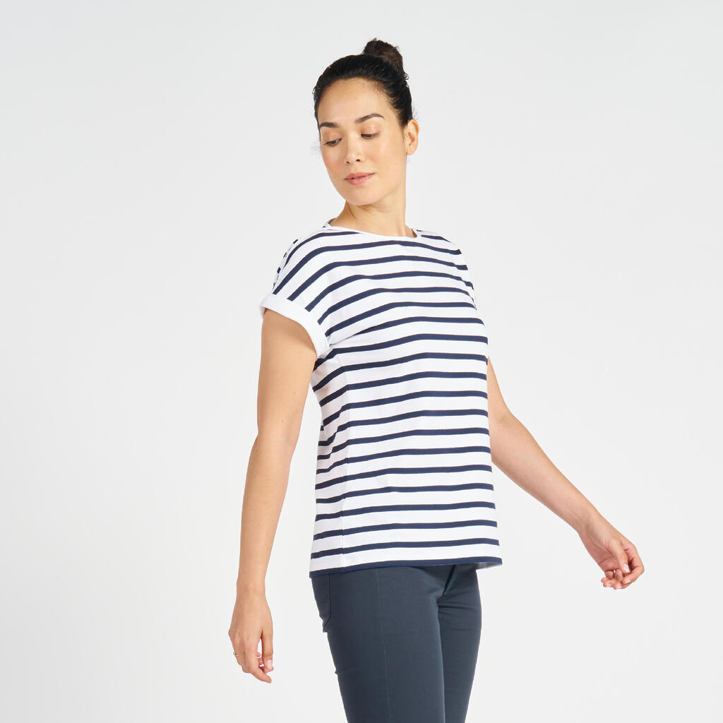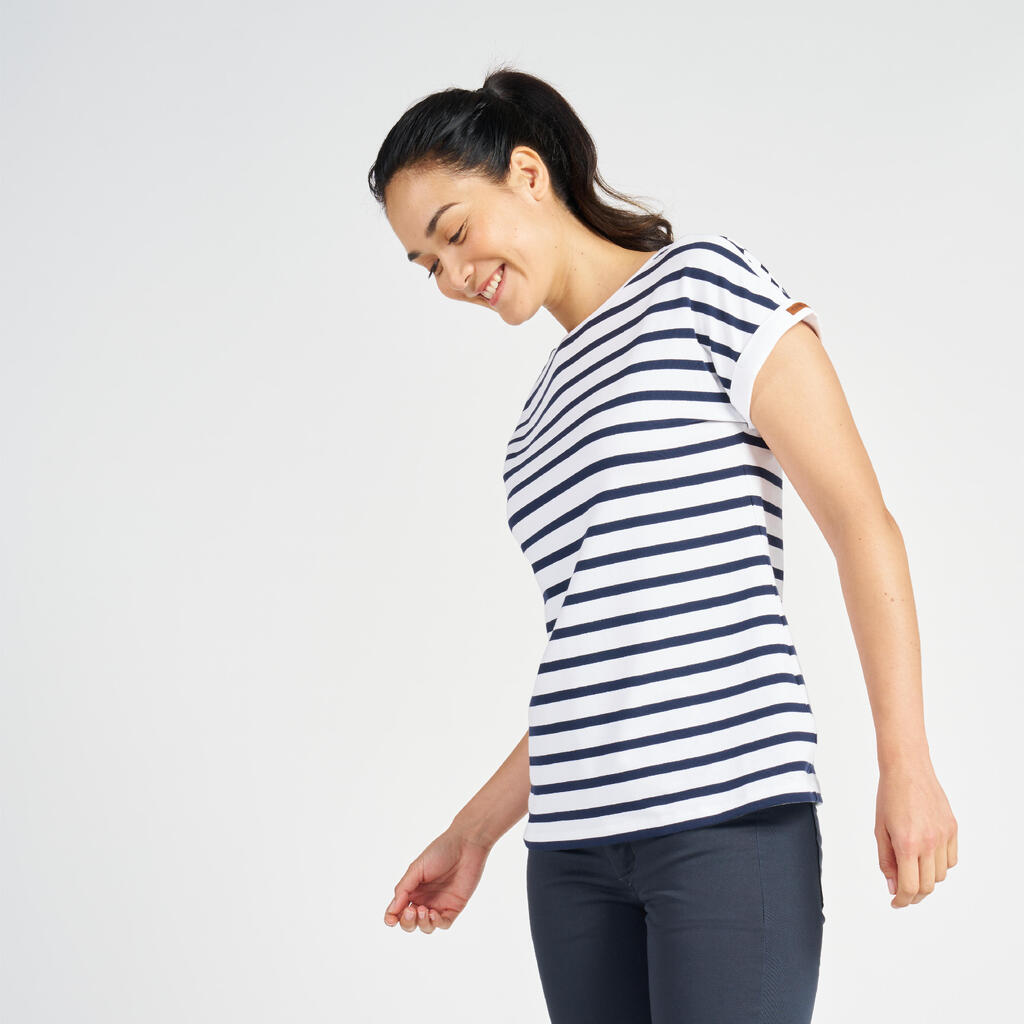 Αυτό το κοντομάνικο T-shirt σε ναυτικό στυλ σας προσφέρει άνεση και απαλότητα χάρη στην περιεκτικότητά του σε βαμβάκι (92%), ενώ παράλληλα σας χαρίζει μεγάλη ελευθερία κινήσεων (8% ελαστάνη).