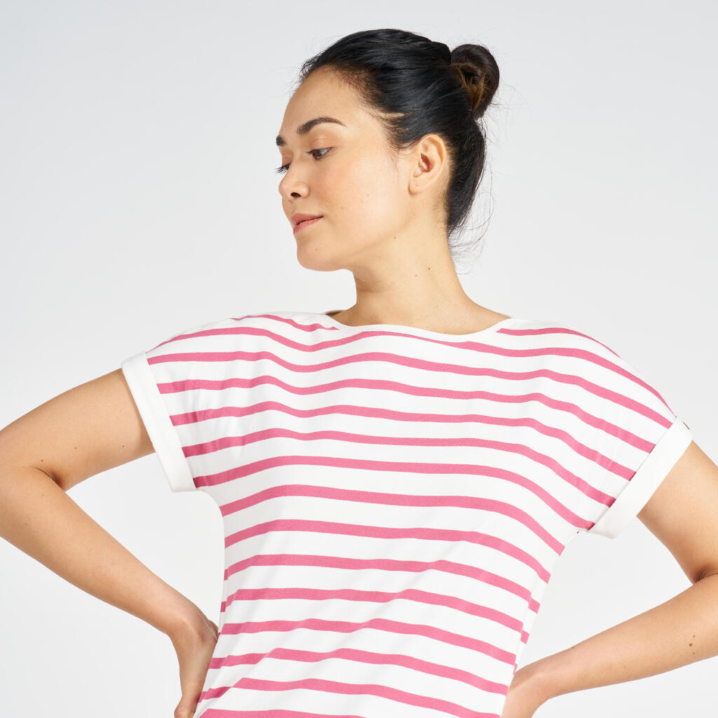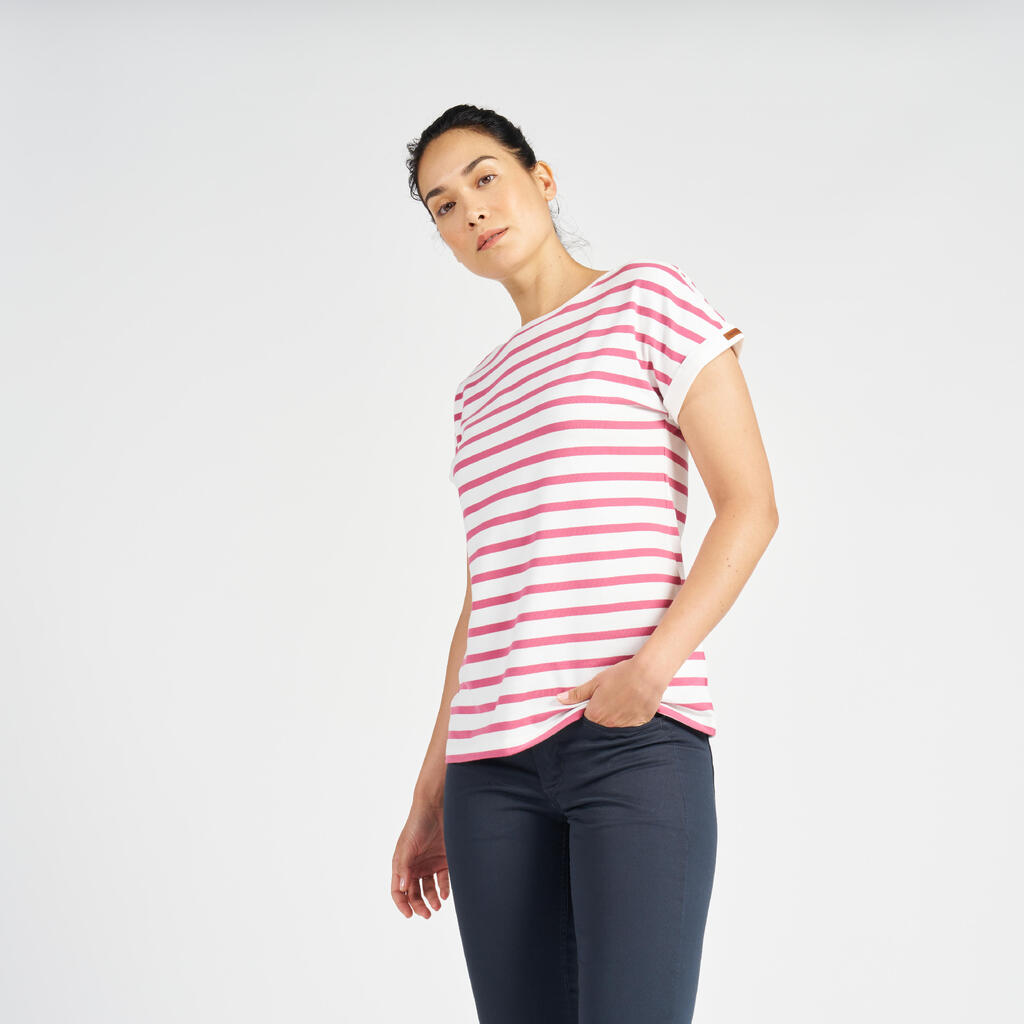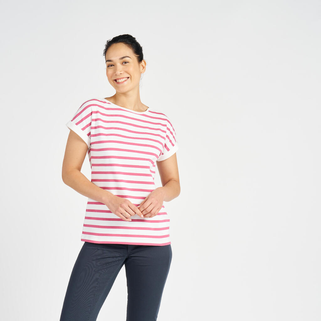 Αυτό το κοντομάνικο T-shirt σε ναυτικό στυλ σας προσφέρει άνεση και απαλότητα χάρη στην περιεκτικότητά του σε βαμβάκι (92%), ενώ παράλληλα σας χαρίζει μεγάλη ελευθερία κινήσεων (8% ελαστάνη).
