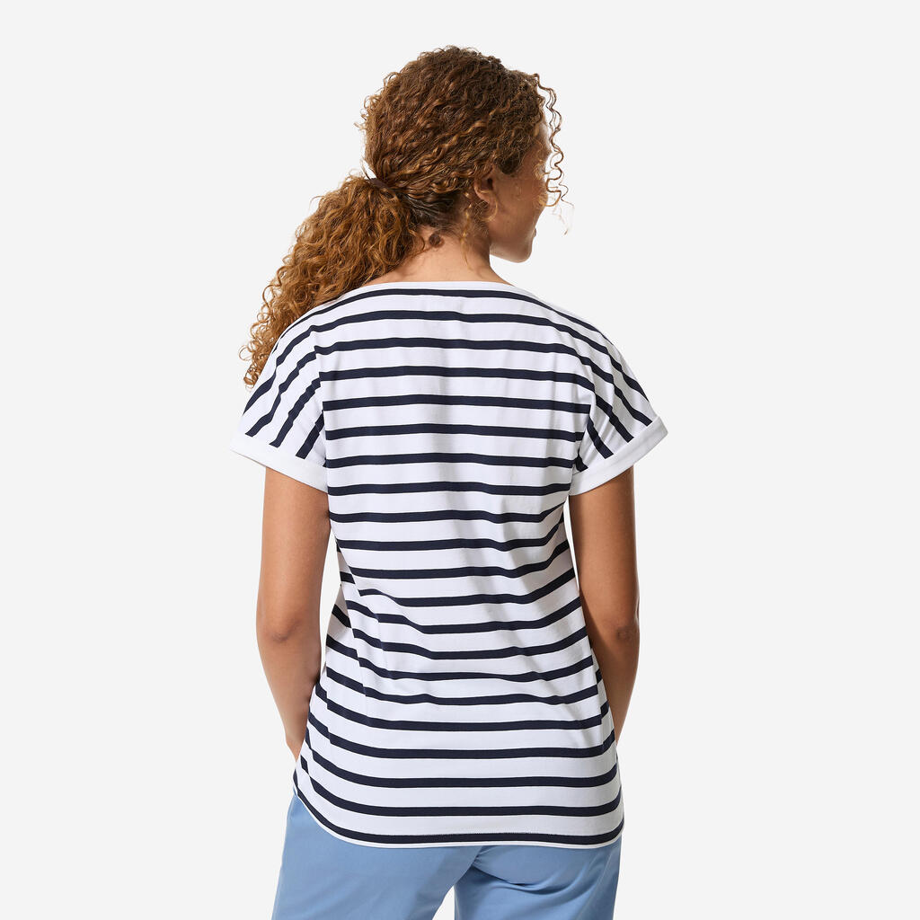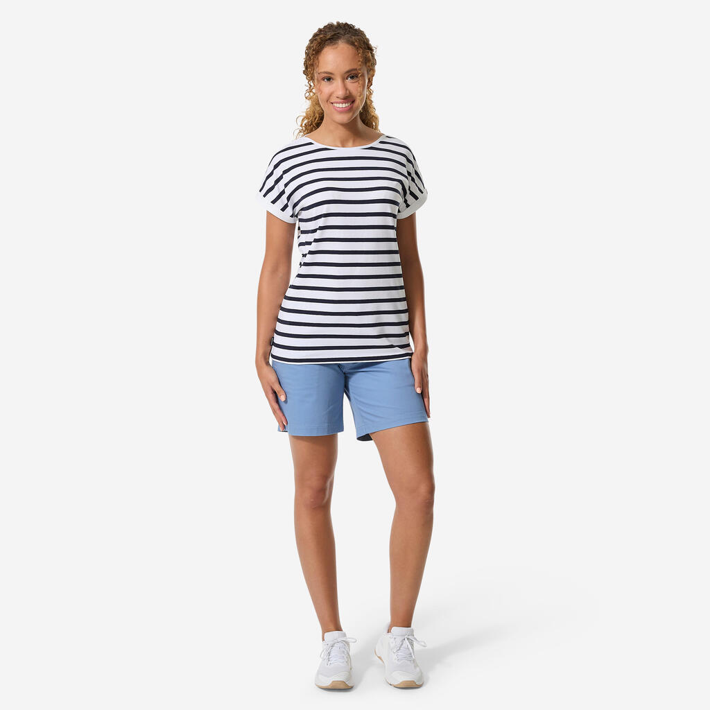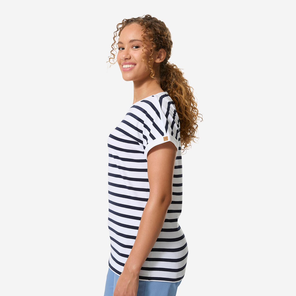 Γυναικείο T-shirt Μαρινιέρα Ιστιοπλοΐας Sailing 100 - Λευκό/Ναυτικό Μπλε