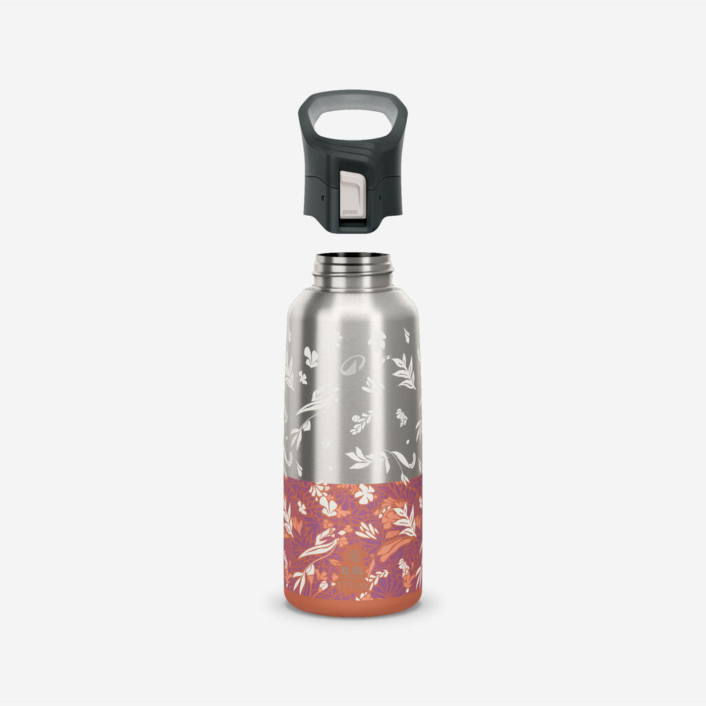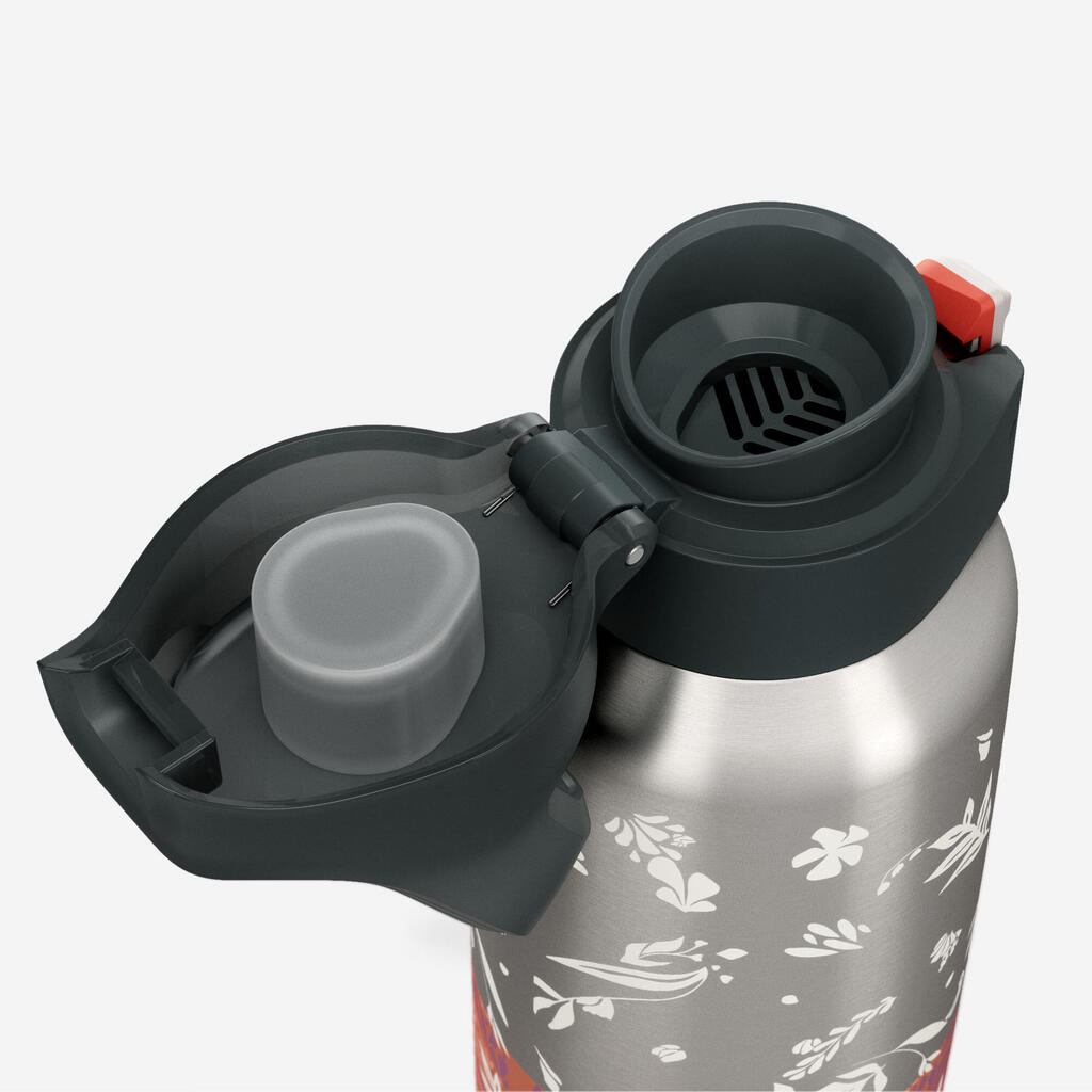 Το πώμα ανοίγει εύκολα με ένα χέρι, πιέζοντας το λευκό κουμπί με την ένδειξη "PRESS". Όταν μεταφέρετε το παγούρι, μπορείτε να κλειδώσετε το κουμπί σύροντας το λευκό κουμπί προς τα κάτω. Εμφανίζεται μια κόκκινη περιοχή που υποδηλώνει ότι το πώμα έχει κλειδωθεί και δεν μπορεί πλέον να πατηθεί.