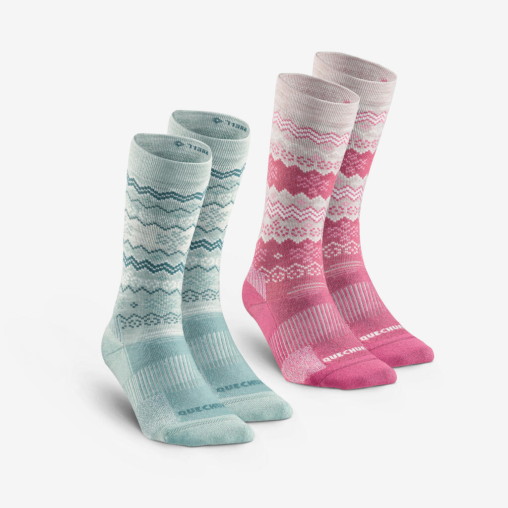 Ζεστές κάλτσες πεζοπορίας SH500 Mid - Πράσινο/Ροζ