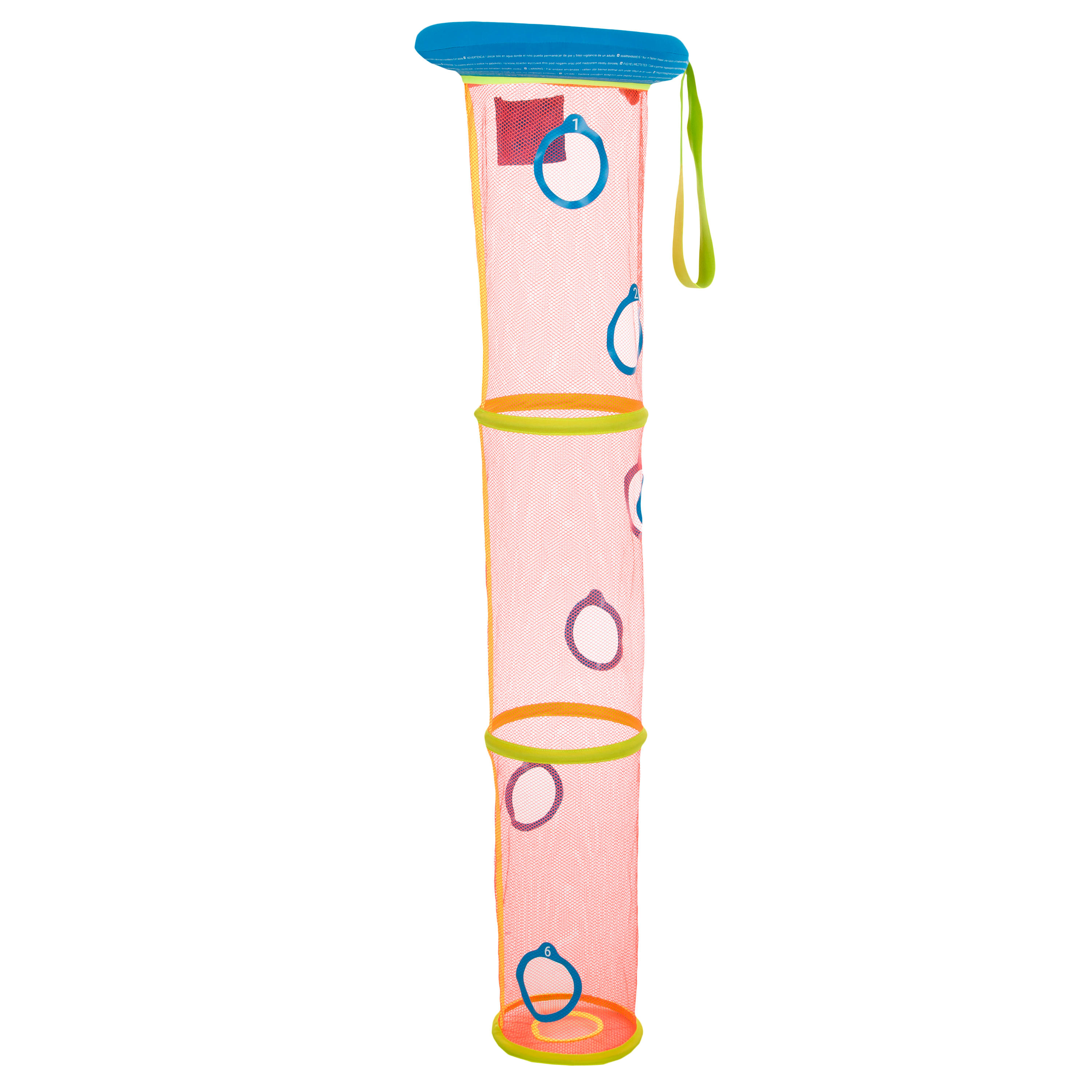 6 στόχοι για να χτυπηθούν με 3 μπάλες ως πρόκληση αλλά και για διασκέδαση κατά την εκμάθηση της υποβρύχιας κολύμβησης. Αυτό το υποβρύχιο παιχνίδια μεταφέρεται εύκολα χάρη στο λουράκι μεταφοράς.