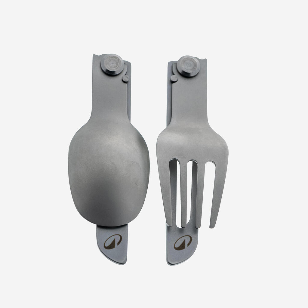 Σετ Πτυσσόμενων Ανοξείδωτων Μαχαιροπίρουνων 900, Πιρούνι + Κουτάλι για Κάμπινγκ