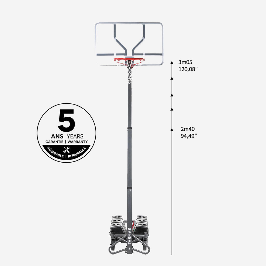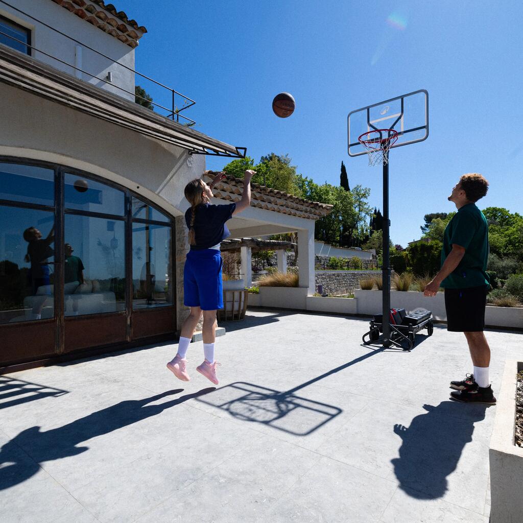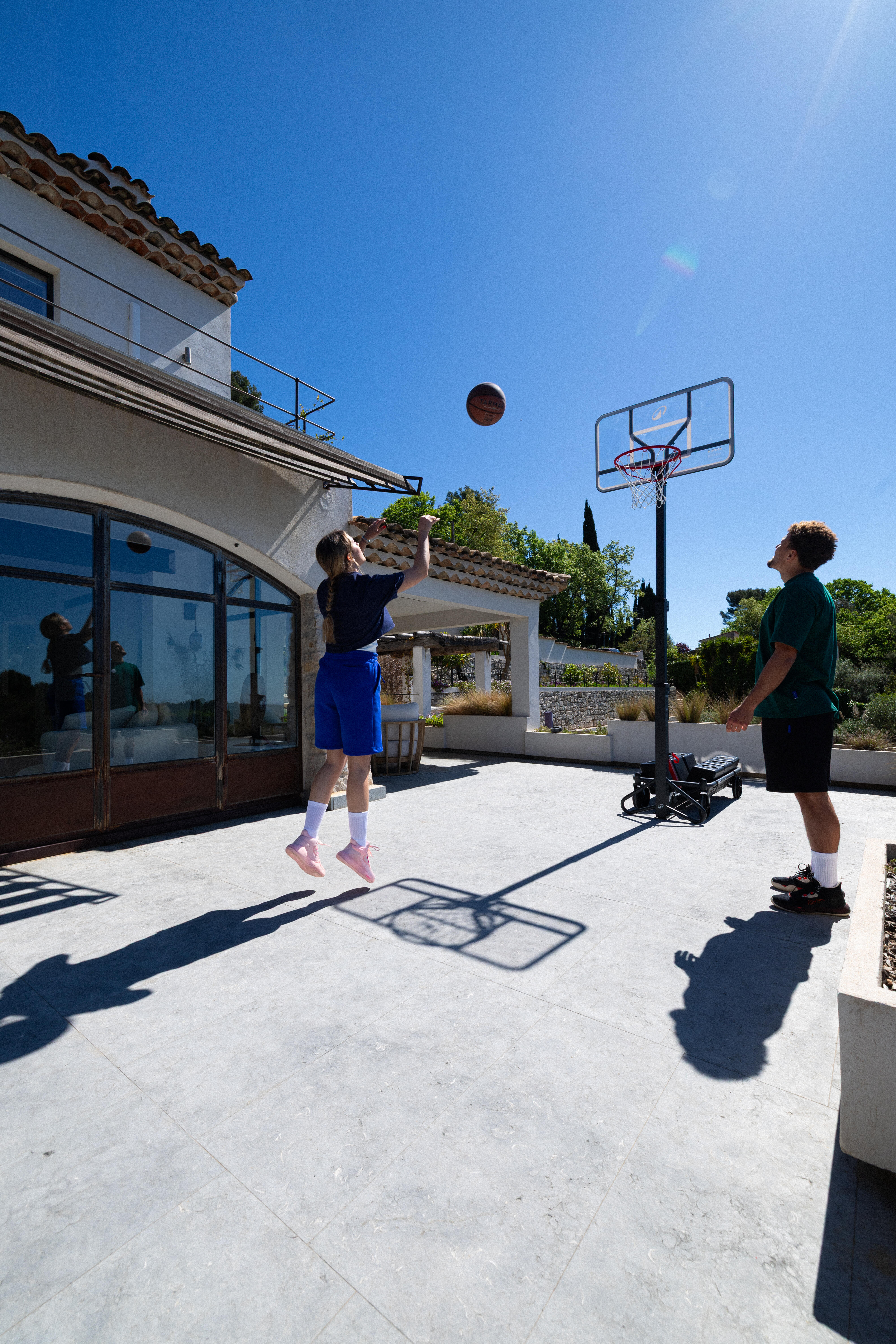 Εκτός από το ότι είναι φορητή και εύκολη στην αποθήκευση, η μπασκέτα B500 Box προσφέρει την ίδια ποιότητα αναπήδησης. Το ταμπλό της κατασκευάζεται από διαφανές πολυανθρακικό πάχους 3mm για εκπληκτικά σουτ που μοιάζουν με αυτά σε μπασκέτα εσωτερικού χώρου.