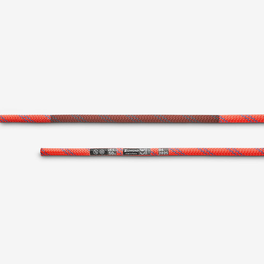 Μισό σχοινί 8,6 mm x 50 m για αναρρίχηση και ορειβασία - RAPPEL 8,6 Πορτοκαλί