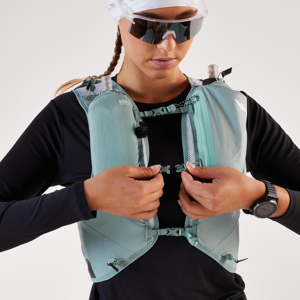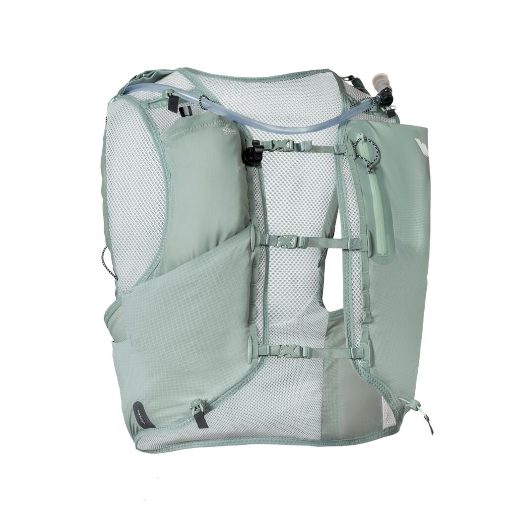 Αυτό το σακίδιο πλάτης 10 λίτρων για ορεινό τρέξιμο διαθέτει ειδικό χώρο μεταφοράς ασκού νερού ενός λίτρου στην πλάτη. Συμπεριλαμβάνεται στην τιμή και προσαρμόζεται με άγκιστρο, χρησιμοποιείται σε θερμοκρασίες από -20 έως +40°C, αποκλειστικά για μεταφορά νερού (αποφύγετε το γάλα, τα αλκοολούχα ροφήματα και τον φούρνο μικροκυμάτων). Μπορείτε να κόψετε τον σωλήνα στο επιθυμητό μήκος και να προσαρμόσετε την άκρη στον μαγνήτη που βρίσκεται στο εμπρός μέρος ή στις 2 ελαστικές ταινίες σε κάθε πλευρά.