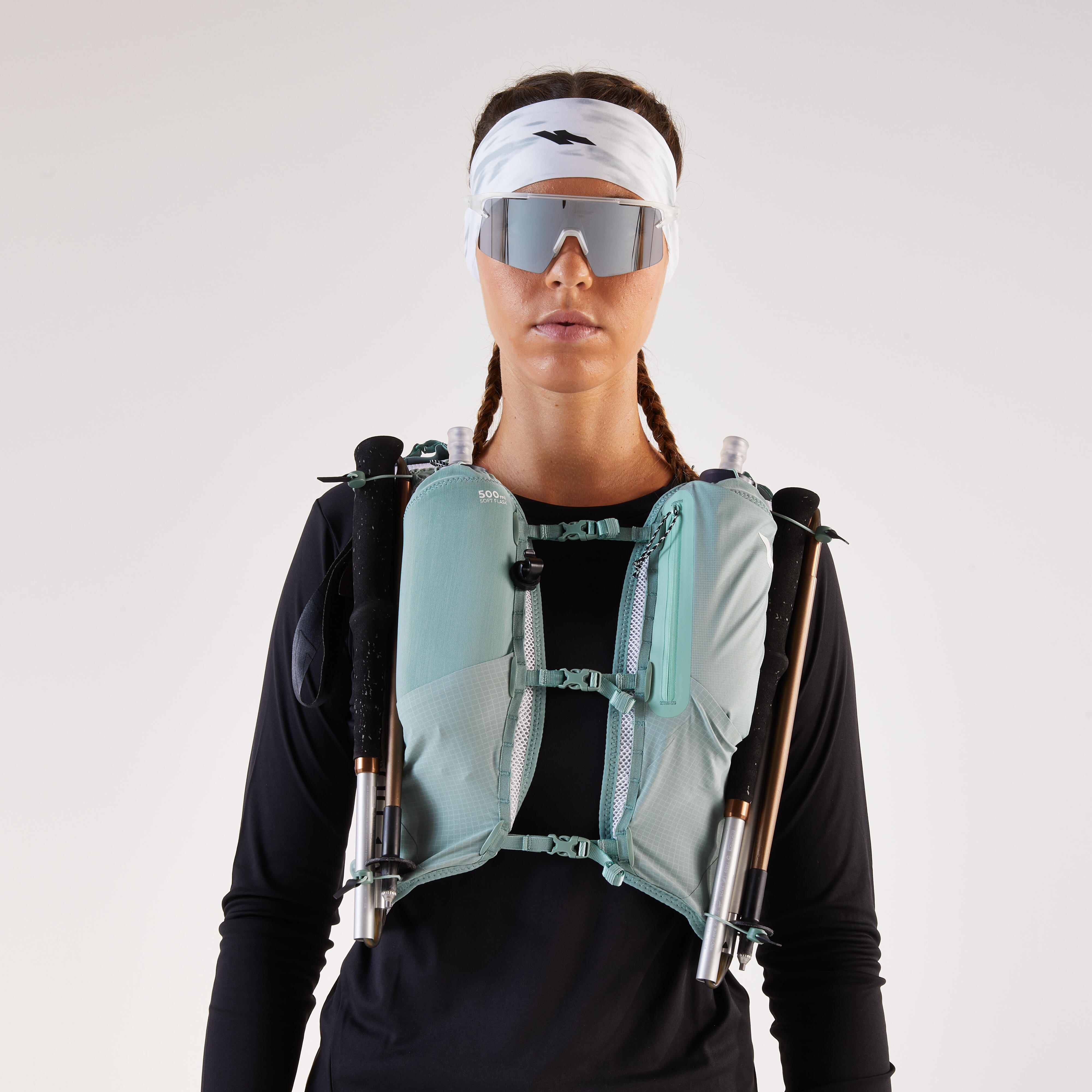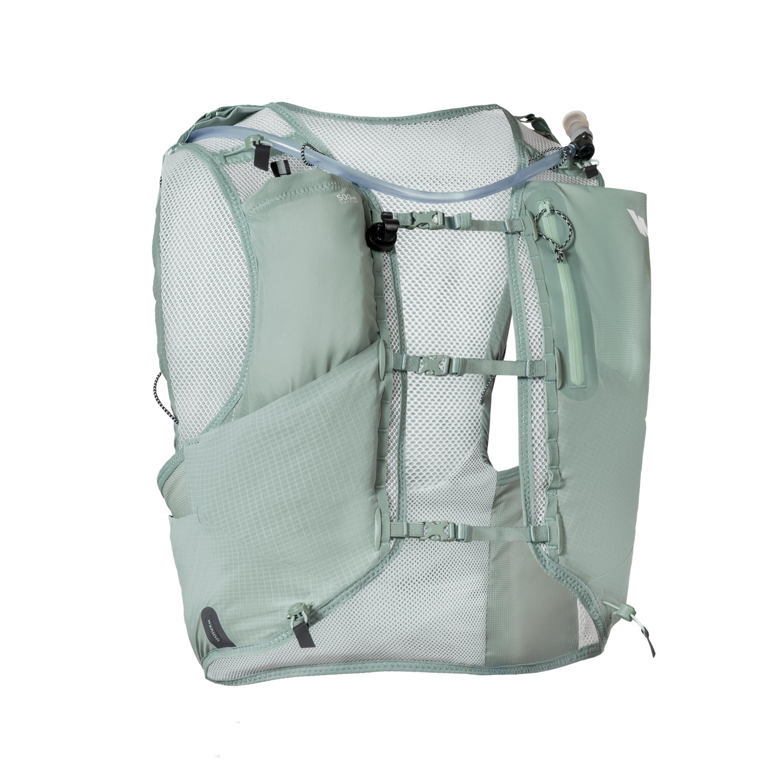 Αυτό το σακίδιο εκφράζει ιδανικά το πνεύμα του ορεινού τρεξίματος: απλή ευχαρίστηση και αναζήτηση των ορίων. Δύο ελαστικές ταινίες εξασφαλίζουν την προσαρμογή, τη σταθεροποίηση και την ασφαλή μεταφορά των φλασκιών. Τέλος, σχεδιάσαμε μια καινοτόμα πίσω τσέπη καγκουρό με γωνιακό άνοιγμα για να έχετε εύκολη πρόσβαση στο αντιανεμικό σας χωρίς να είστε ο άνθρωπος-λάστιχο!