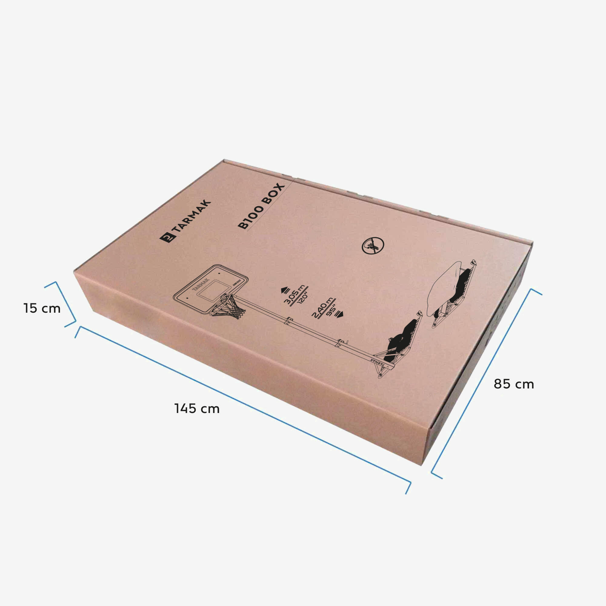 Η τεχνολογία BOX αποτελεί καινοτομία της Tarmak με έναν στόχο: την εύκολη αποθήκευση της μπασκέτας μετά τη χρήση, για εξοικονόμηση χώρου. Η υπόσχεση του B100 BOX: ξεδιπλώνεται και διπλώνεται σε λιγότερο από ένα λεπτό. Ο στύλος διπλώνει και γέρνει, ενώ το ταμπλό μαζεύεται πάνω στη βάση για να τοποθετηθεί κάτω από το προστατευτικό κάλυμμα για πιο εύκολη αποθήκευση. Δημιουργήστε το δικό σας γήπεδο, χωρίς να καταλάβετε όλο τον χώρο του κήπου σας.