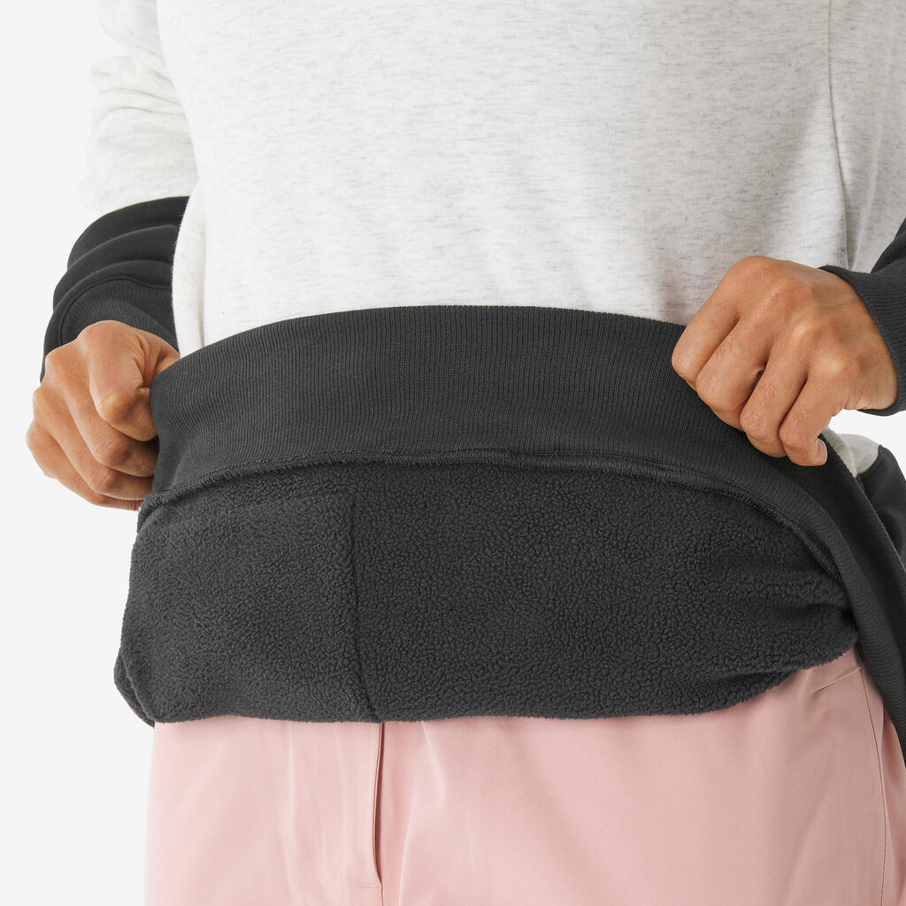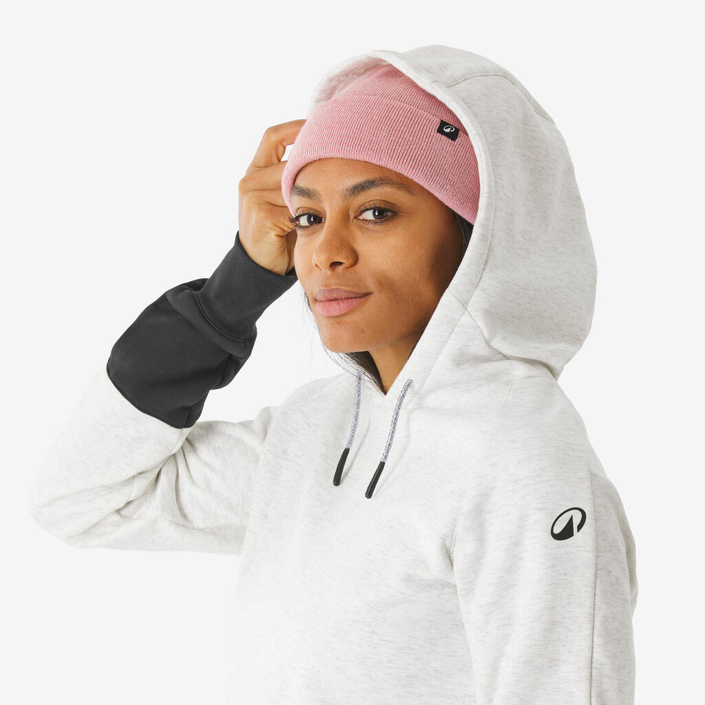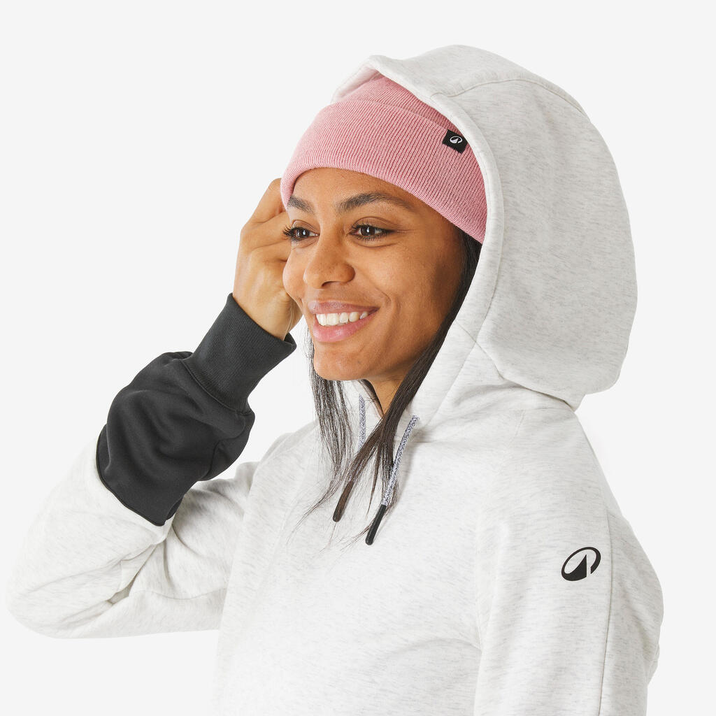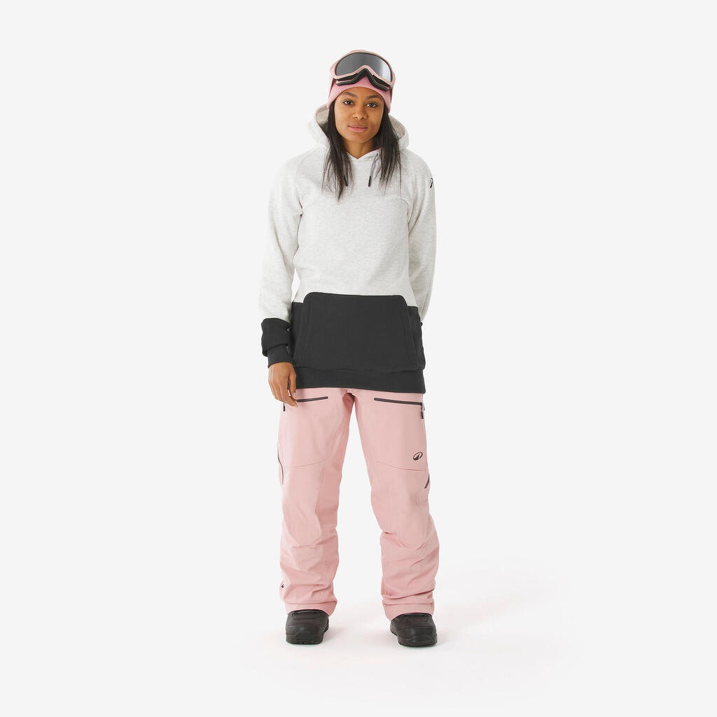 Γυναικείο ζεστό, άνετο φούτερ snowboard με μισό φερμουάρ και κουκούλα-Μπεζ/Μαύρο