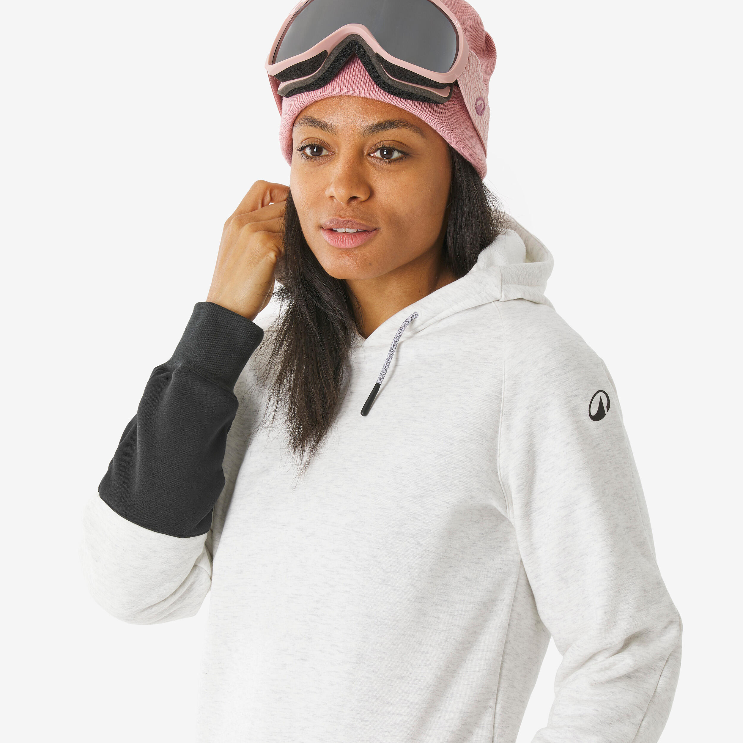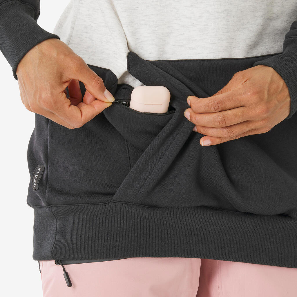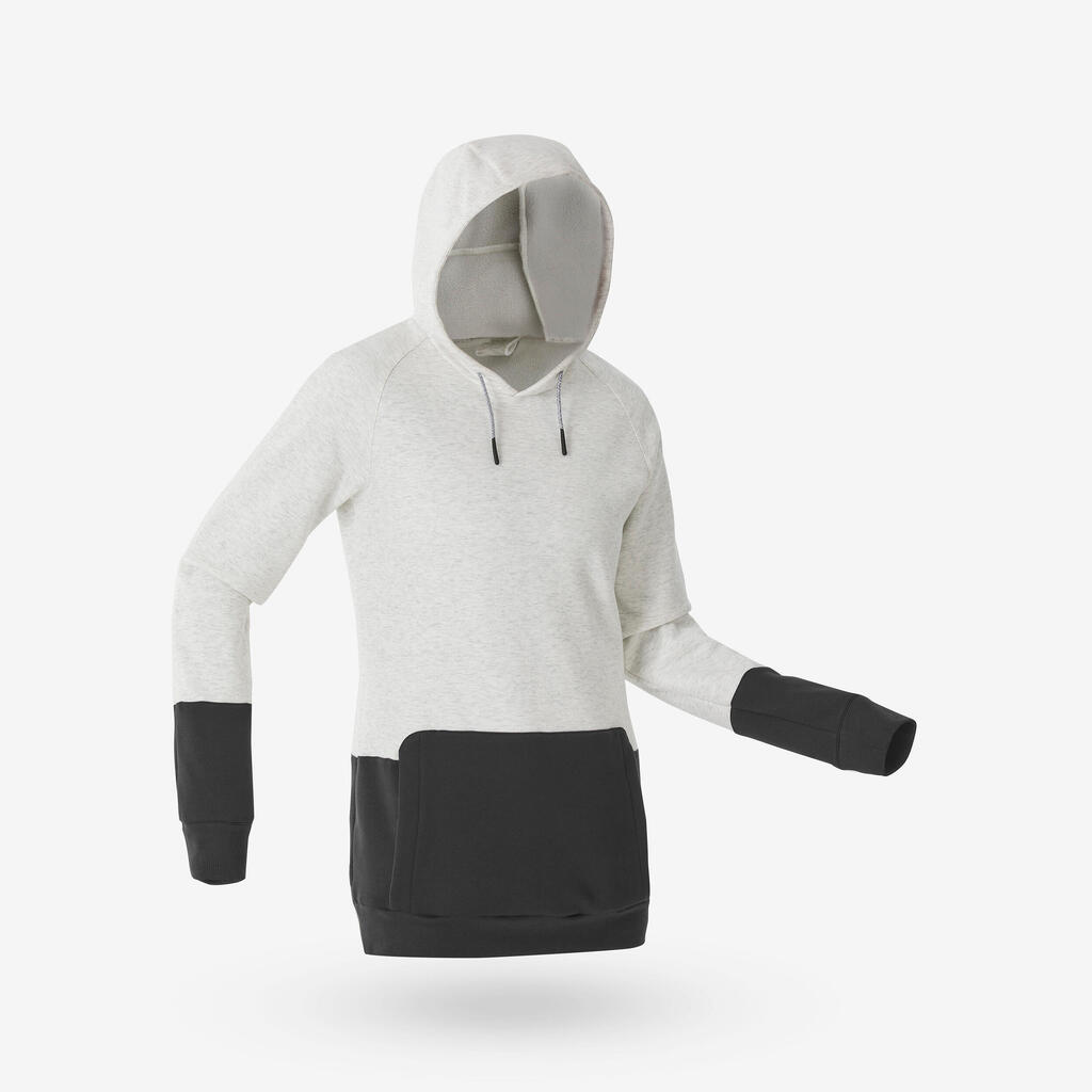 Γυναικείο ζεστό, άνετο φούτερ snowboard με μισό φερμουάρ και κουκούλα-Μπεζ/Μαύρο