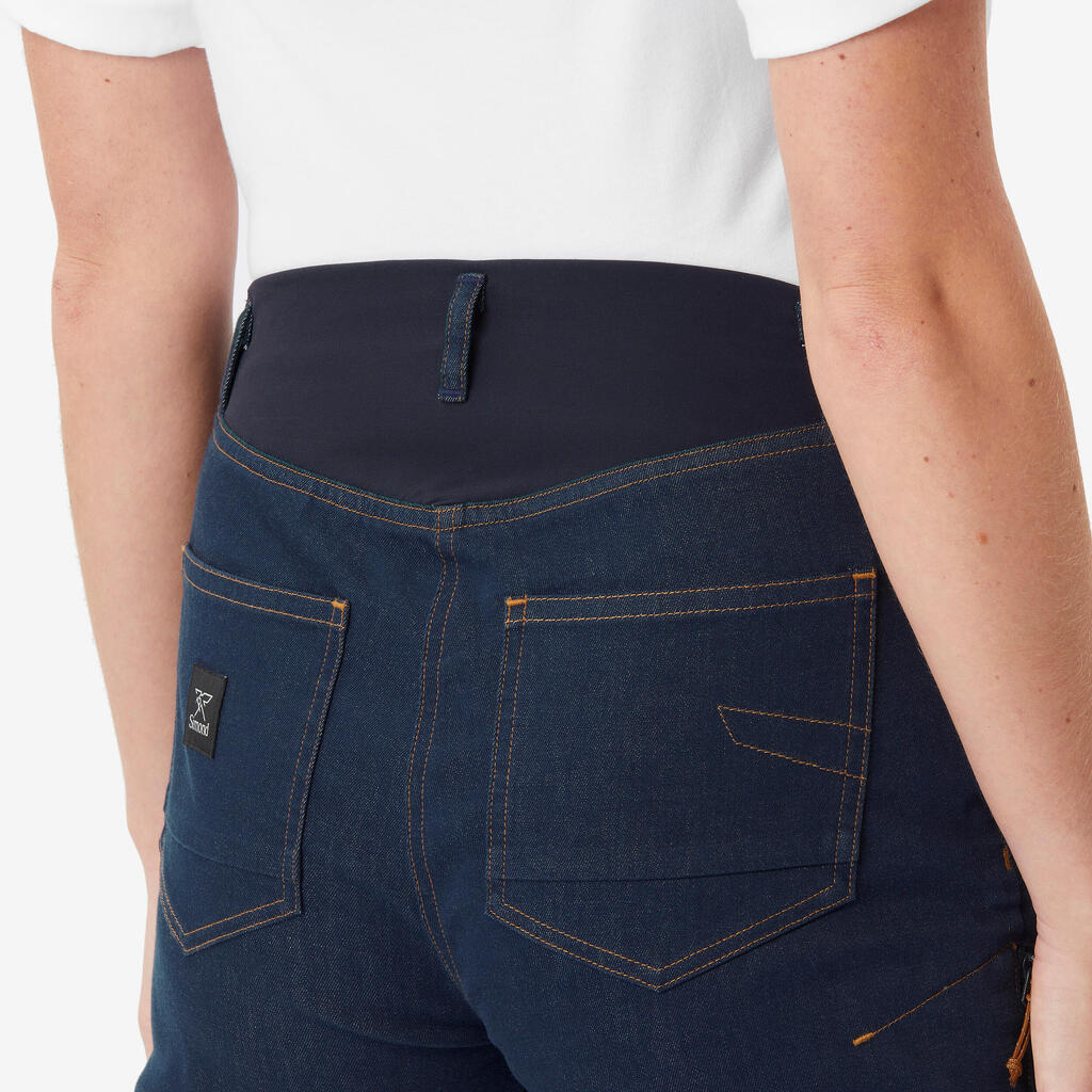 Χάρη στην ελαστικότητά του, αυτό το τζιν αναρρίχησης είναι εξαιρετικά άνετο ακόμα και όταν φοριέται με μποντριέ. Η αντοχή του στην τριβή είναι ιδανική για αναρρίχηση σε βράχο.
