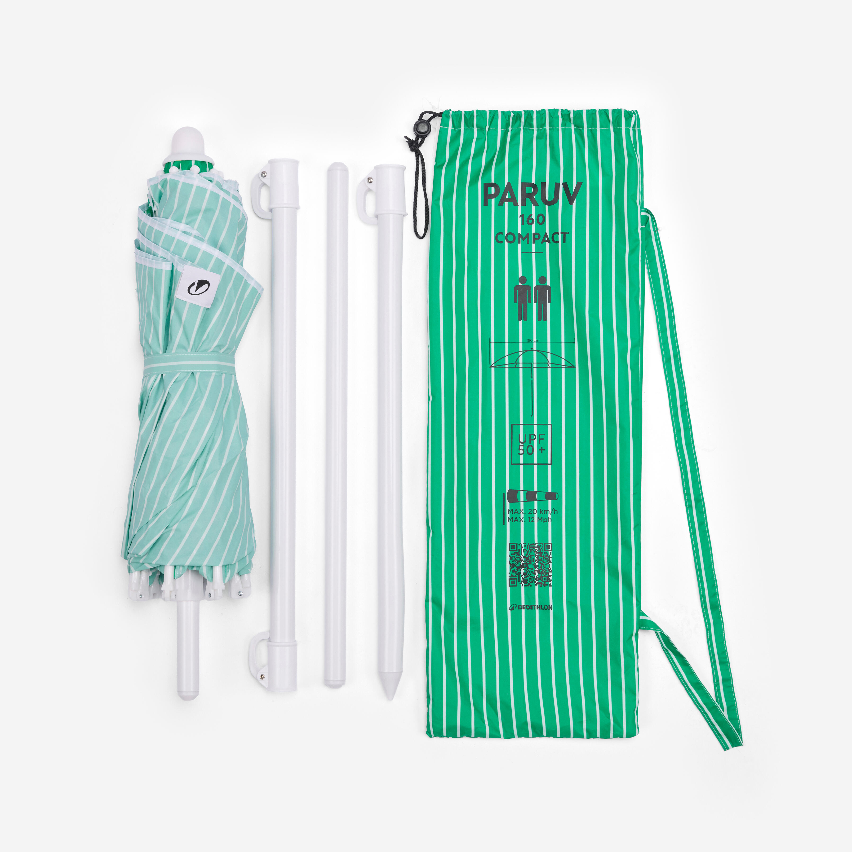 Προστατευτείτε από τον ήλιο στην παραλία (UPF50+)! Ανθεκτική σε ανέμους έως 20 km/h, καλύθπτει έως και 2 ενήλικες.