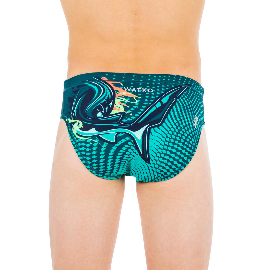 Αγορίστικο μαγιό για πόλο - 500 Shark σκούρο μπλε και τυρκουάζ