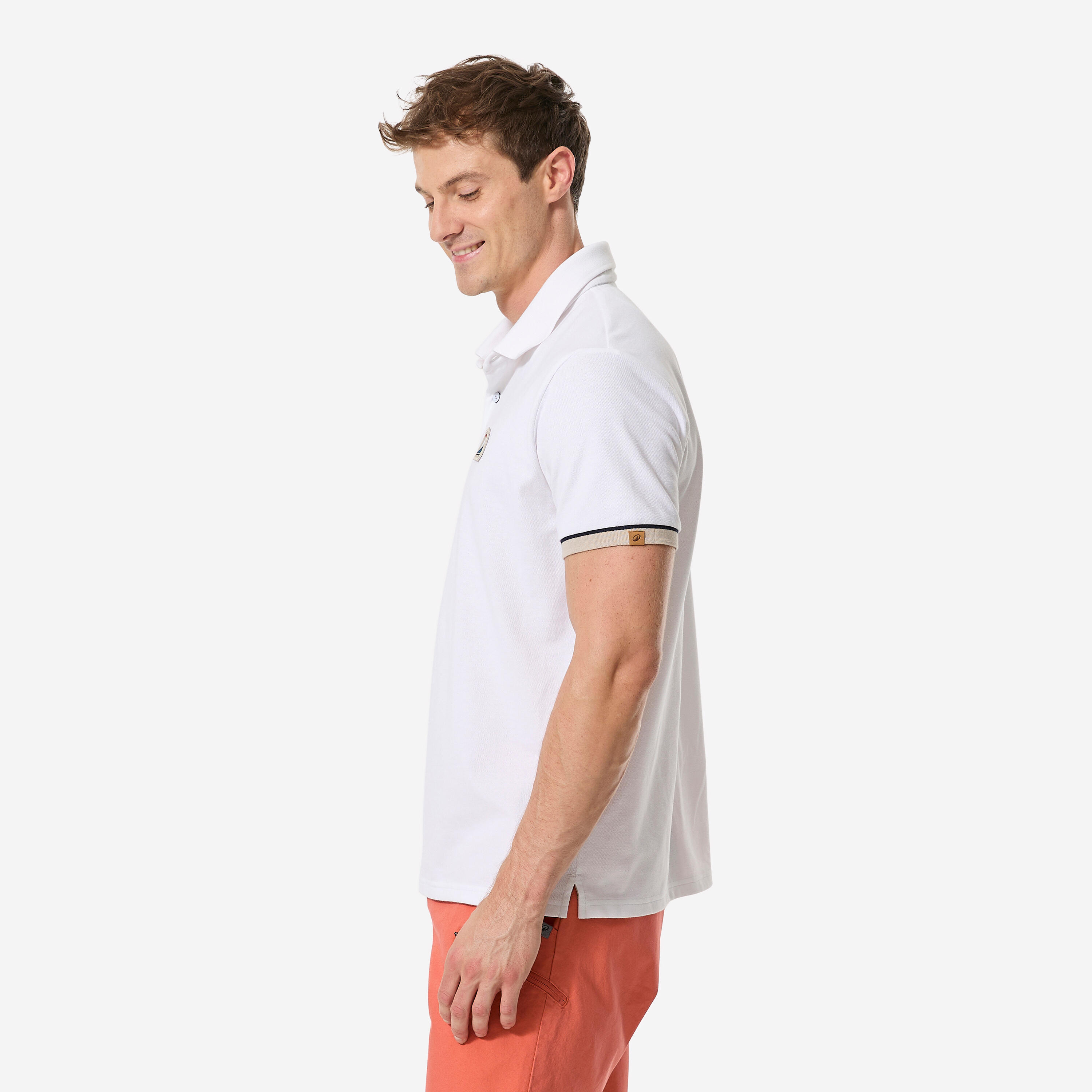Ανδρική μπλούζα πόλο από ελαφρύ, διαπνέον, ελαστικό πλεκτό ύφασμα για ταξίδια ιστιοπλοΐας. Το ύφασμα είναι συνδυασμός βαμβακιού και πολυεστέρα για να διευκολύνει την απομάκρυνση του ιδρώτα