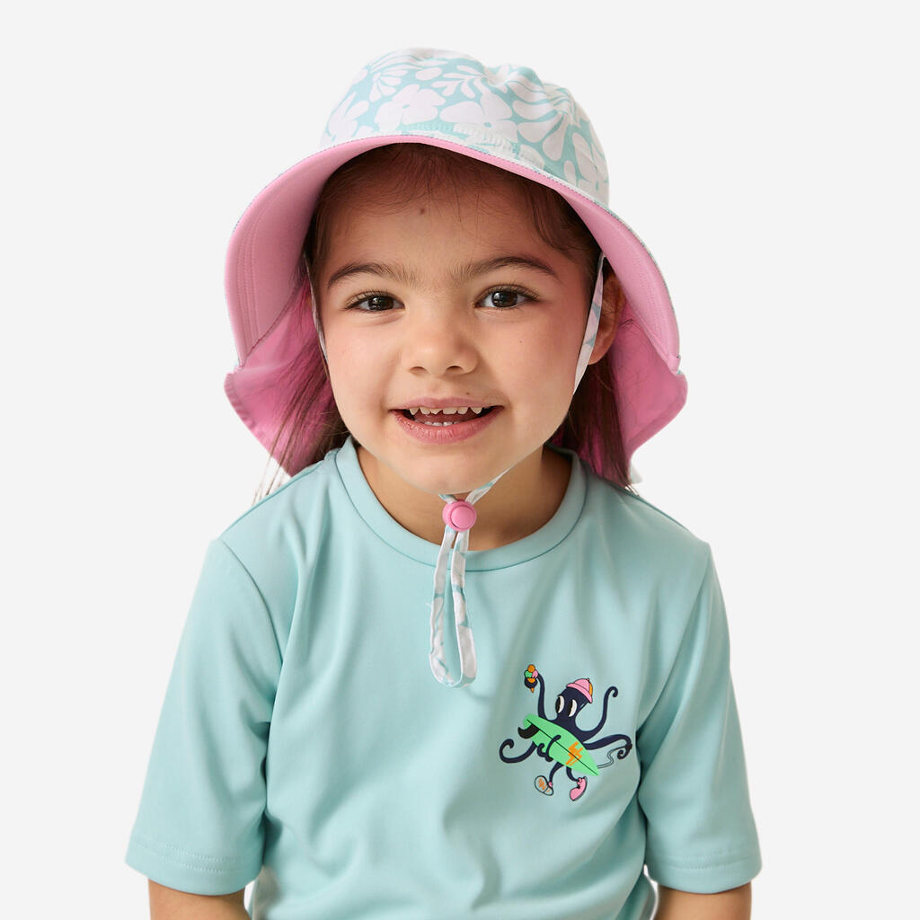 Πολύχρωμο καπέλο διπλής όψης με προστασία UV, σχεδιασμένο για να προστατεύει το κεφαλάκι των βρεφών/παιδιών από τον ήλιο στις δραστηριότητές τους στο νερό.