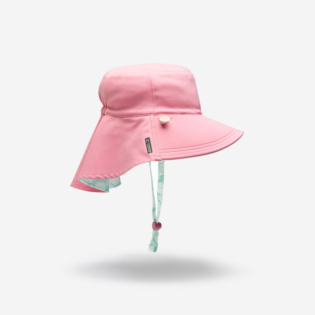 Δεν χρειάζεται να διαλέξετε το σκέτο ή εμπριμέ! Αυτό το καπέλο διπλής όψης με ρυθμιζόμενο κορδόνι προσφέρει απόλυτη αντηλιακή προστασία σε κεφάλι, αυχένα & αυτιά του βρέφους/παιδιού. Σε δύο μεγέθη.