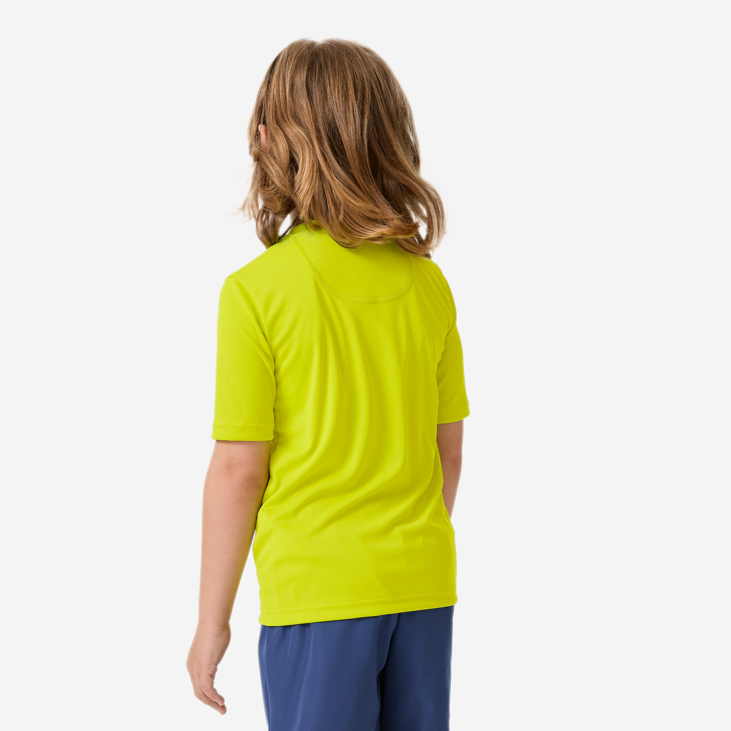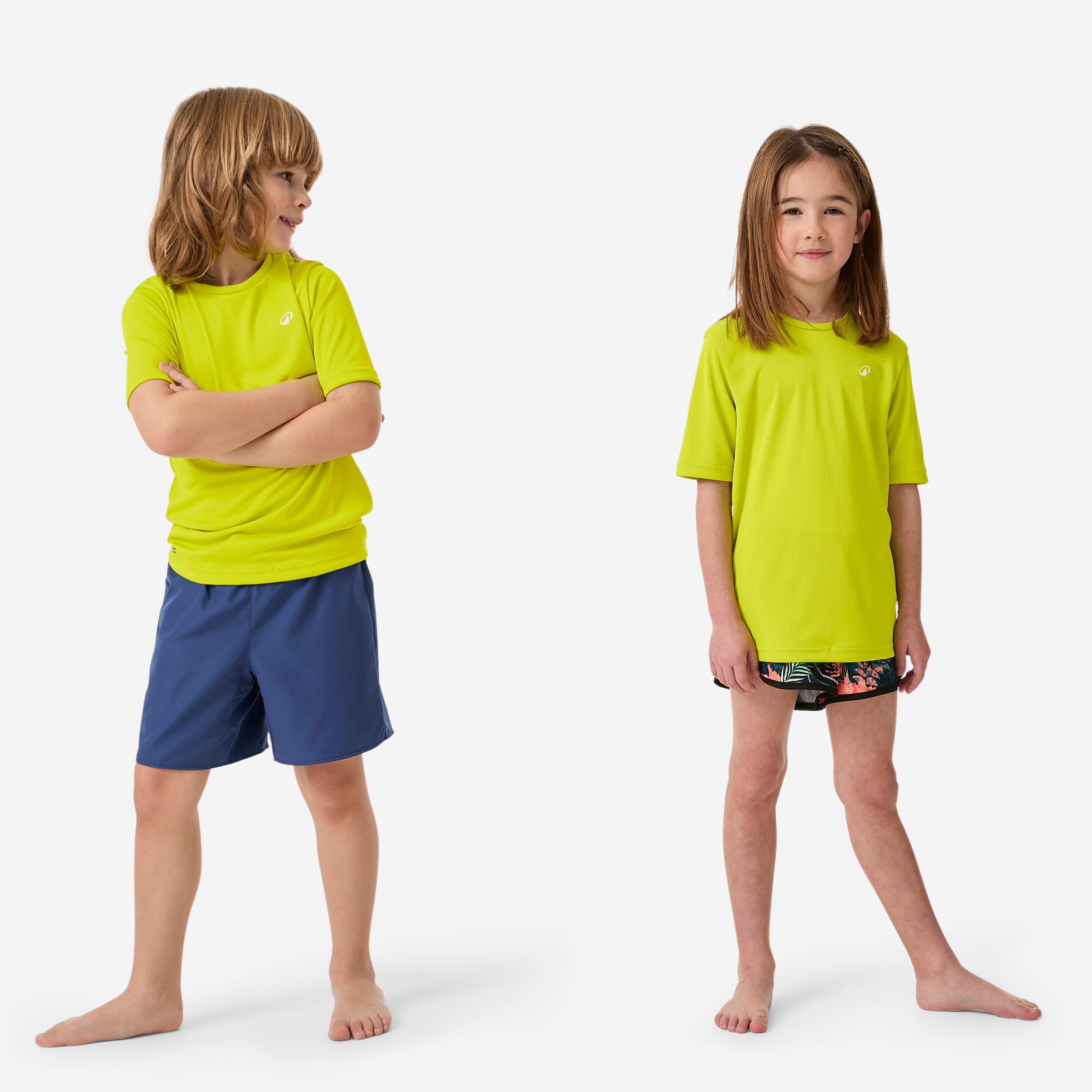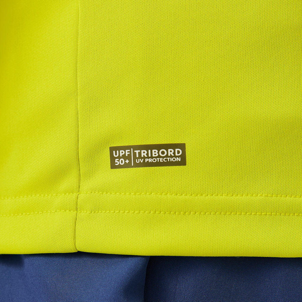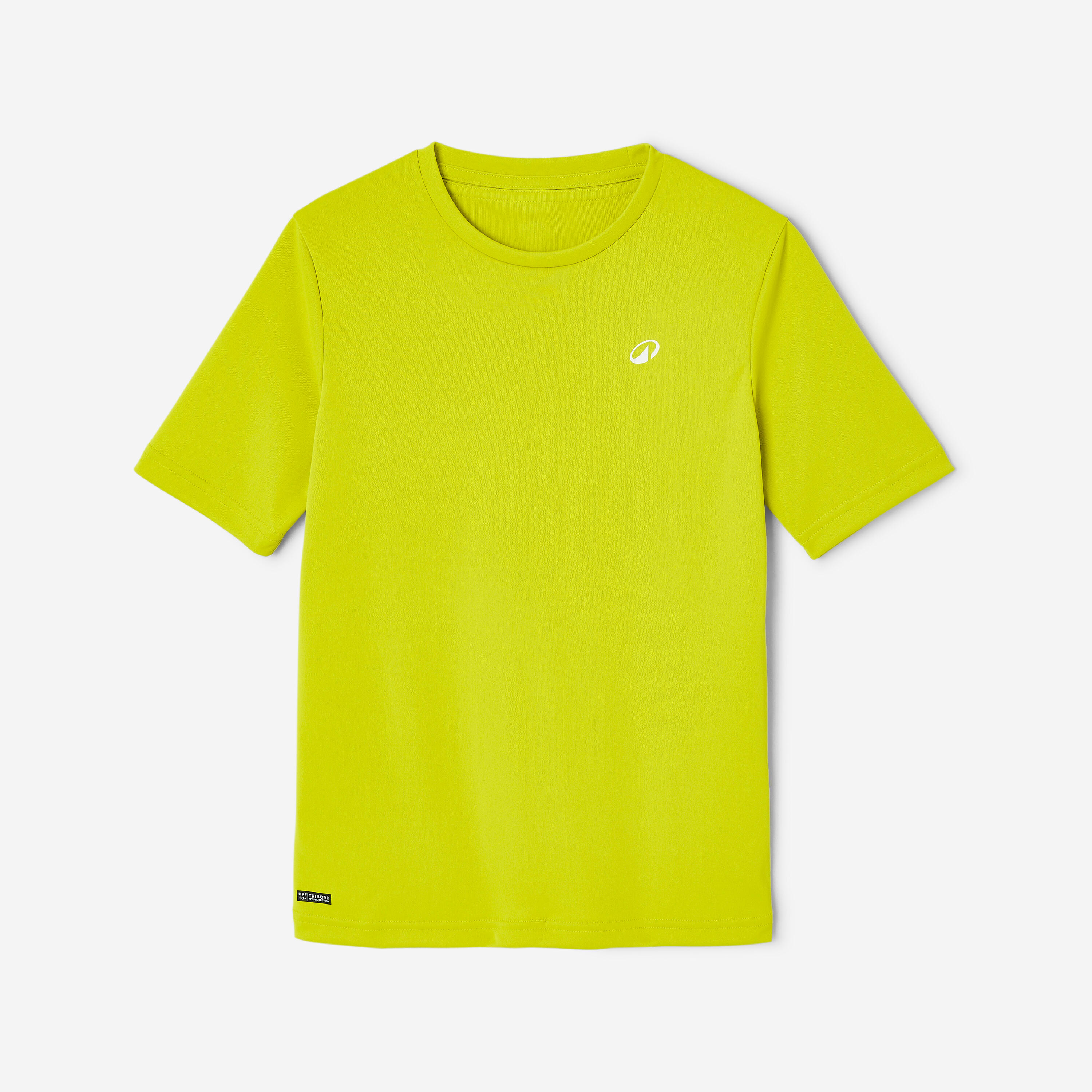 Παιδικό κοντομάνικο T-shirt για προστασία από την υπεριώδη ακτινοβολία, ακόμα και κάτω από το νερό, και περιορισμό των ερεθισμών κατά την επαφή με τη σανίδα. Χαλαρή γραμμή για εύκολη εφαρμογή.