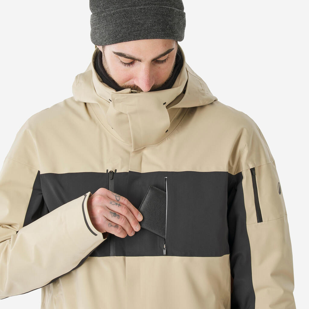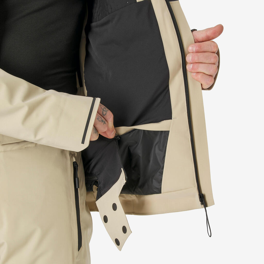 Το αδιάβροχο υλικό και η συναρμολόγηση δεν αφήνουν το νερό να εισχωρήσει. Οι ραφές είναι αδιάβροχες, και τα φερμουάρ είναι επίσης αδιάβροχα και με προστατευτικό καπάκι. Αυτό το μπουφάν έχει ελεγχθεί με ειδική δοκιμή καταιονισμού που αναπαράγει τις συνθήκες των χιονοδρομικών κέντρων, καθώς και στο πεδίο, για αρκετές μέρες σε διάφορες καιρικές συνθήκες.