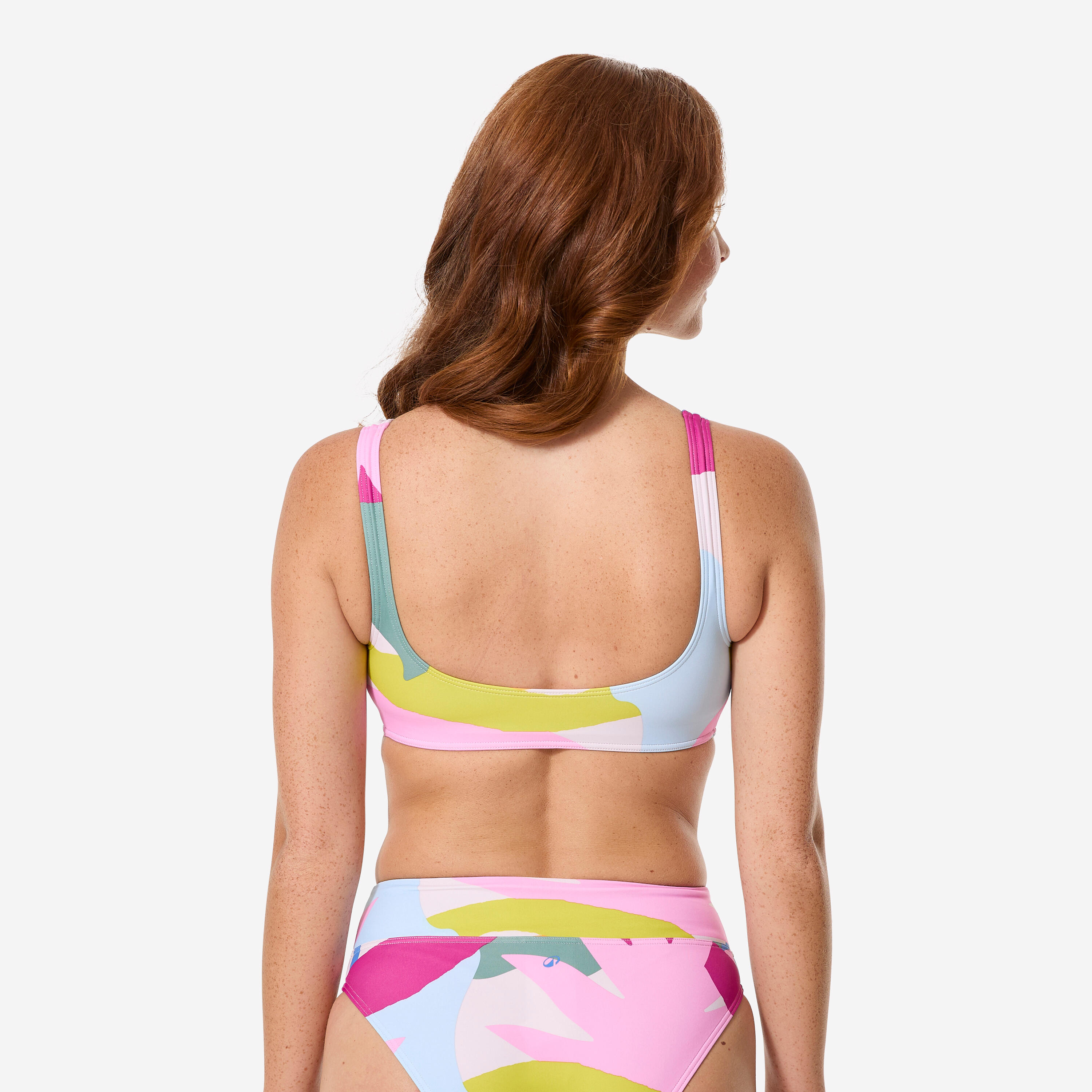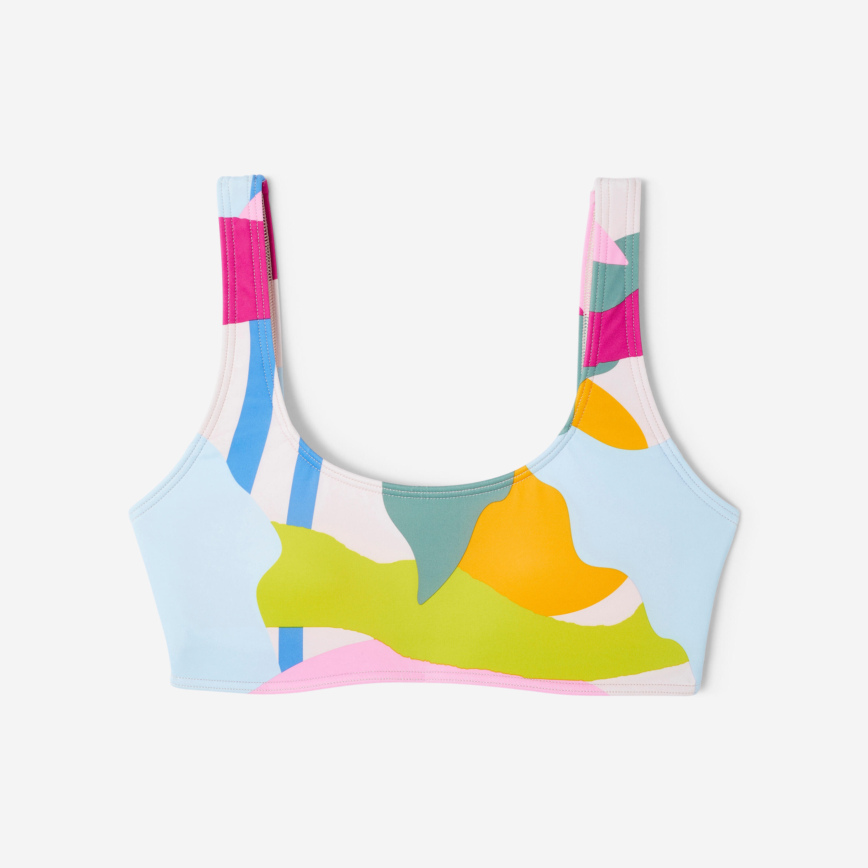 Άνω μέρος μαγιό με απλό σχέδιο, φοριέται εύκολα, με ντεκολτέ και πλάτη σε σχήμα U, με αφαιρούμενη ενίσχυση.