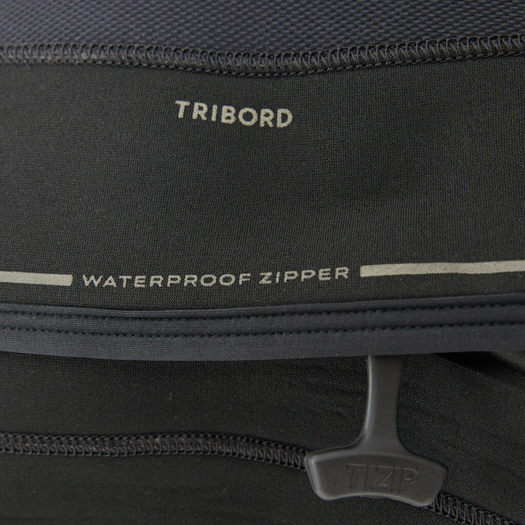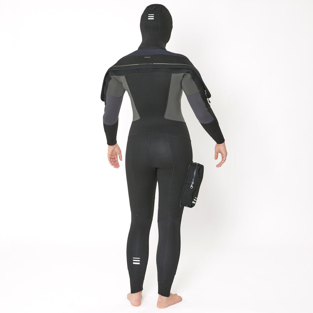 Πλήρως αδιάβροχο φερμουάρ πλάτης T-Zip. Σας συμβουλεύουμε να το λιπαίνετε τακτικά με λιπαντικό σιλικόνης για να παρατείνετε τη διάρκεια ζωής του φερμουάρ και για να είναι πιο εύκολο το κλείσιμο της στολής κατάδυσης. Οι ραφές της στολής και της κουκούλας είναι αδιάβροχες, με συναρμολόγηση με κολλητές και τυφλές ραφές (GBS): το νεοπρέν κολλάται πρώτο και στη συνέχεια ράβεται για μέγιστη αντοχή (η βελόνα ραψίματος δεν διαπερνά εντελώς το νεοπρέν προκειμένου να αποτρέπεται η διείσδυση νερού).