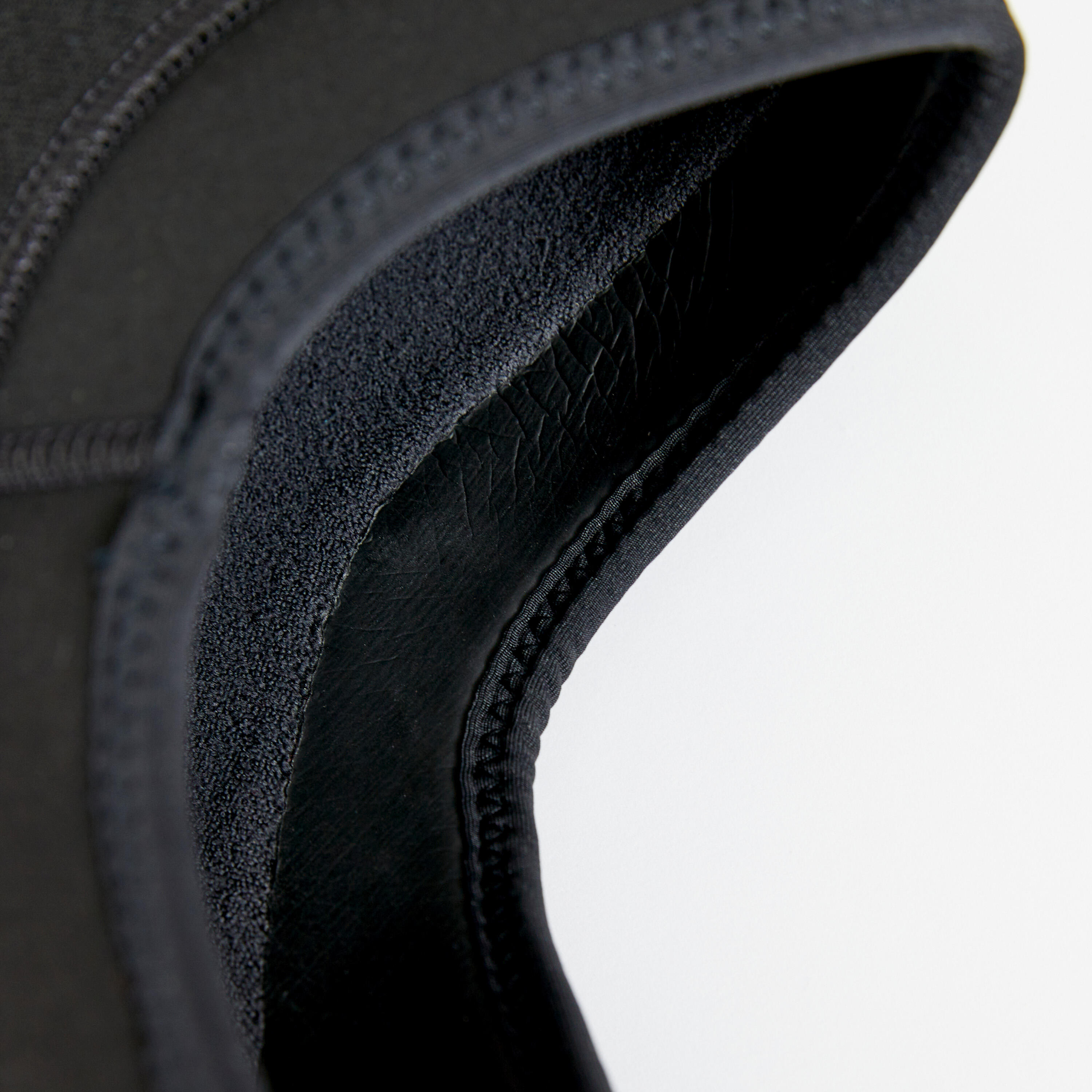 Ξεχωριστή κουκούλα νεοπρέν πάχους 7 mm, με εσωτερική νάιλον θηλιά plush, που εφαρμόζει πάνω στο πρόσωπο με προδιαμορφωμένο πηγούνι. Η πιο ανοιχτόχρωμη κεντρική ταινία αποτελείται από ελαστικό νεοπρέν για να προσαρμόζεται καλύτερα στο σχήμα του κεφαλιού.