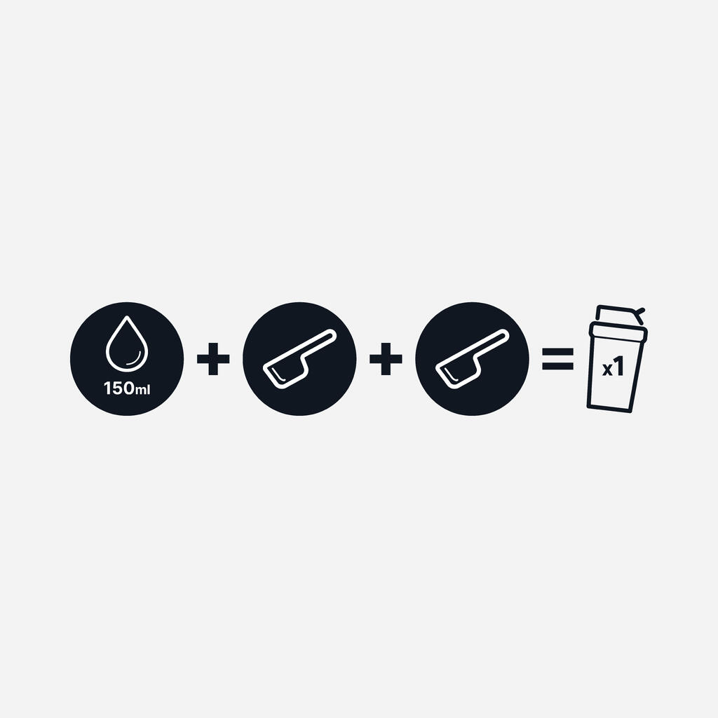 Εύκολη παρασκευή:150 ml νερό + 30 g 100% σκόνη προϊόντος σε ένα σέικερ.