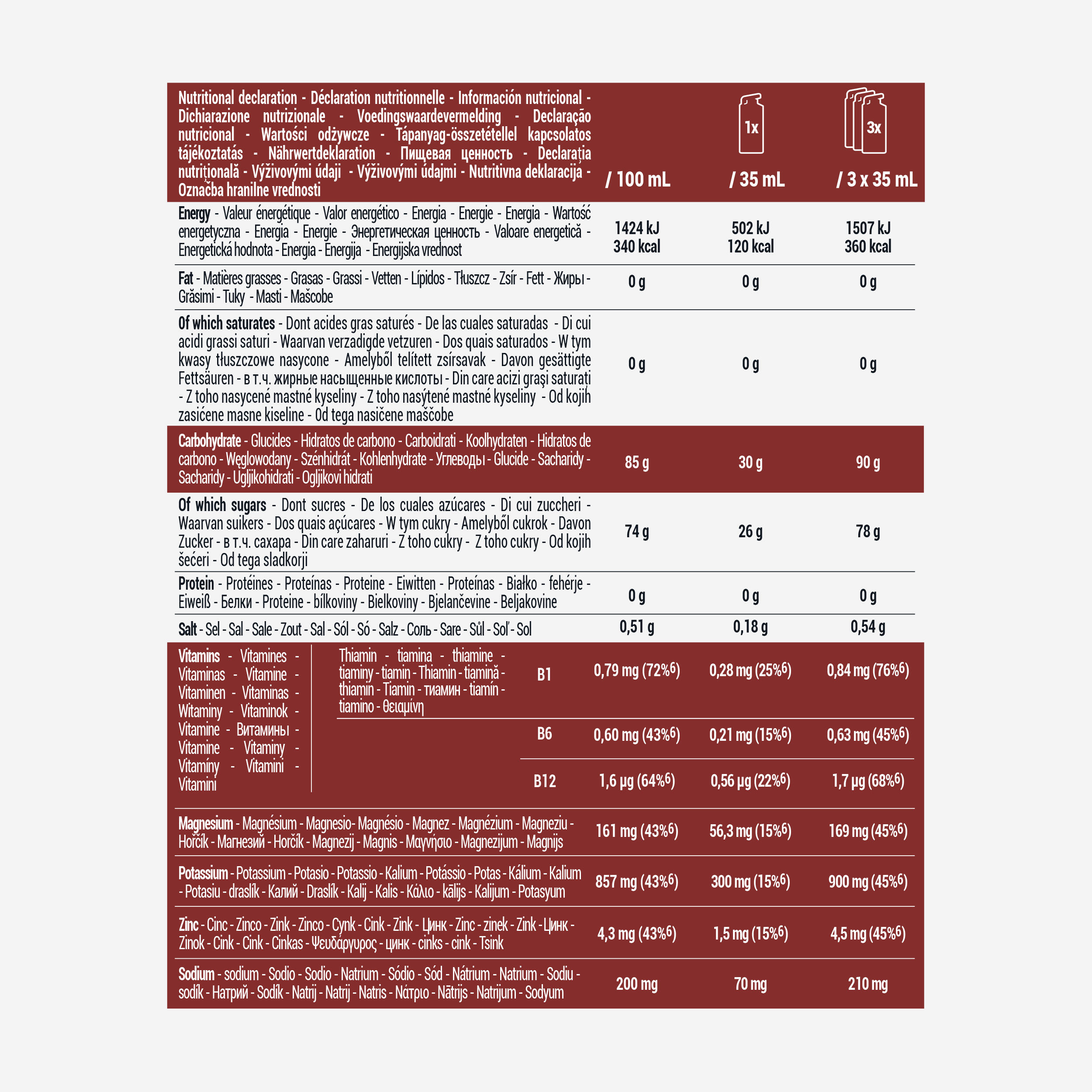 Νέα σύνθεση: 30g υδατάνθρακες, αναλογία γλυκόζης/φρουκτόζης 2:1 για καλύτερες επιδόσεις.Και βιταμίνες B6 και B12 για μείωση της κόπωσης.