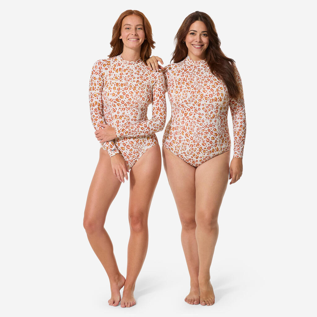 Αυτό το γυναικείο ολόσωμο μαγιό με μακριά μανίκια και φερμουάρ στην πλάτη παραμένει σταθερό σε μεγάλα κύματα και είναι κατάλληλο για όλα τα θαλάσσια σπορ και ειδικά για σέρφινγκ.