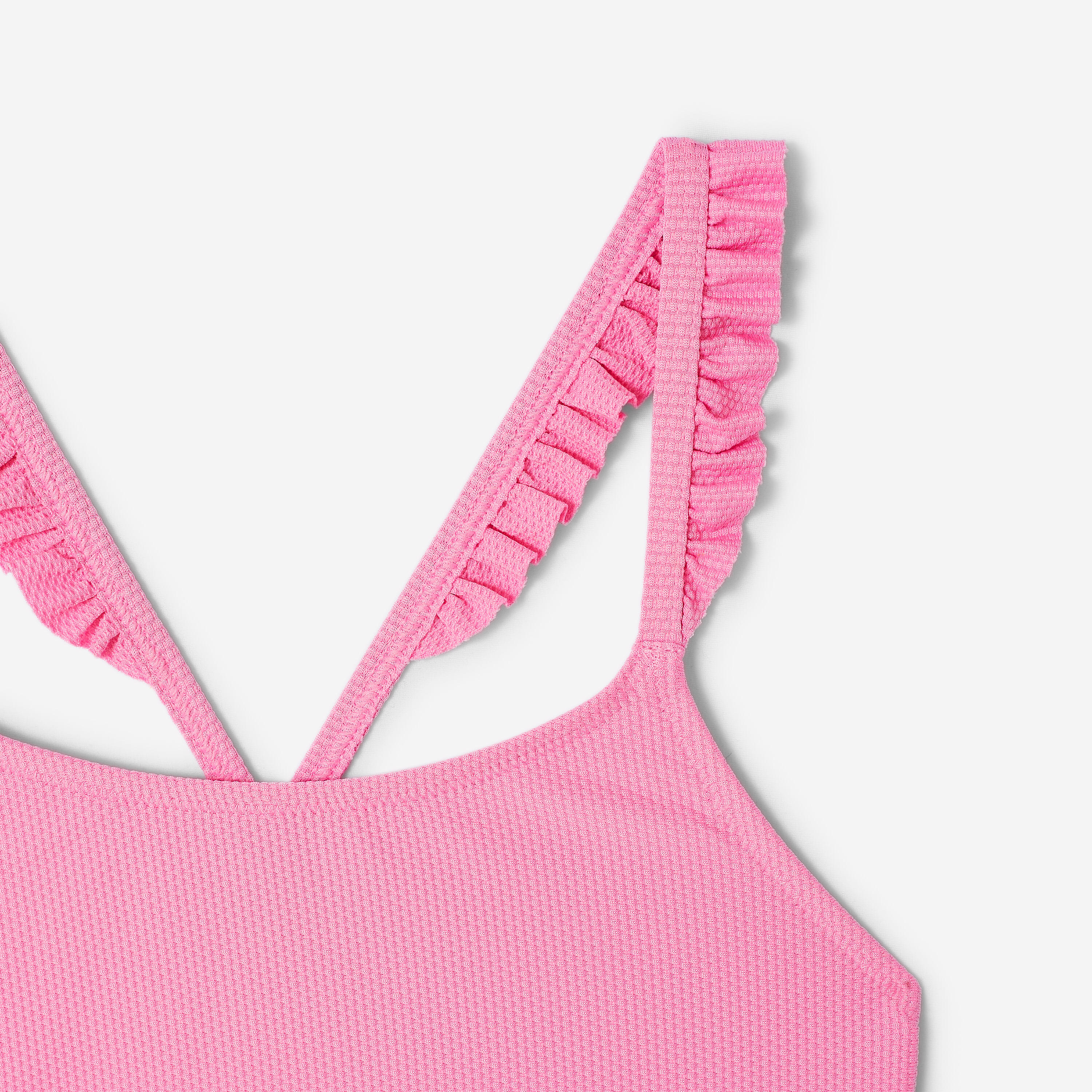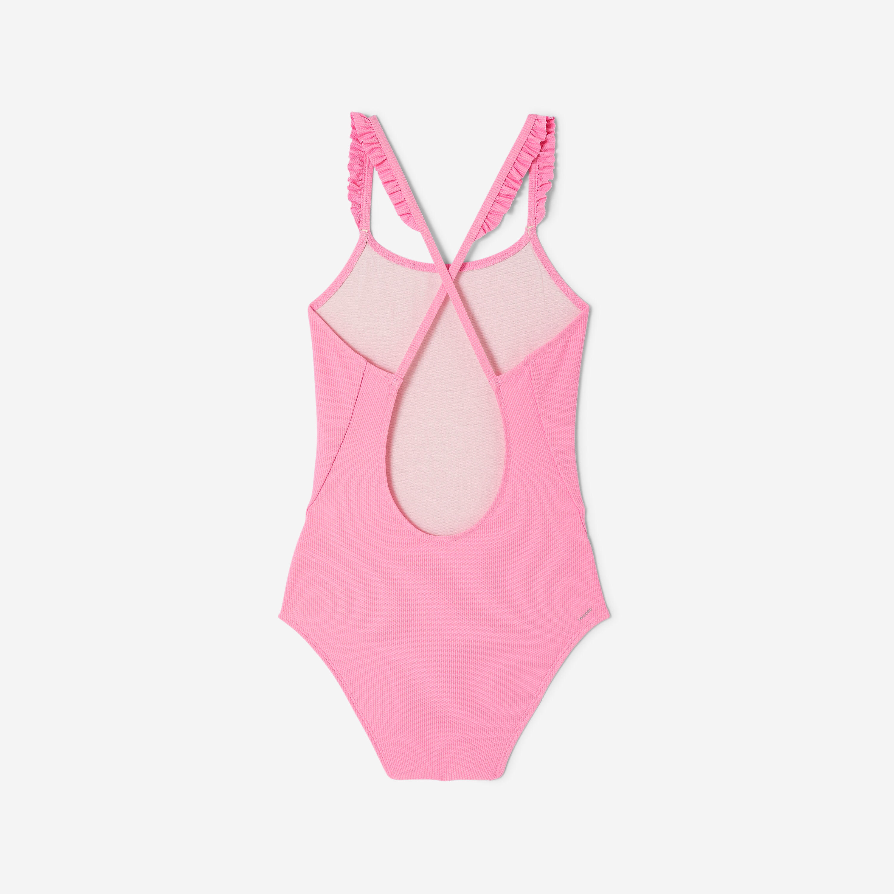Εγγυημένη ελευθερία κινήσεων με αυτό το μαγιό με τις λεπτές χιαστί τιράντες & την ανοιχτή πλάτη.Οι λεπτομέρειες που κάνουν τη διαφορά:το φανταχτερό του χρώμα, η ανάγλυφη υφή του & τα υπέροχα βολάν!
