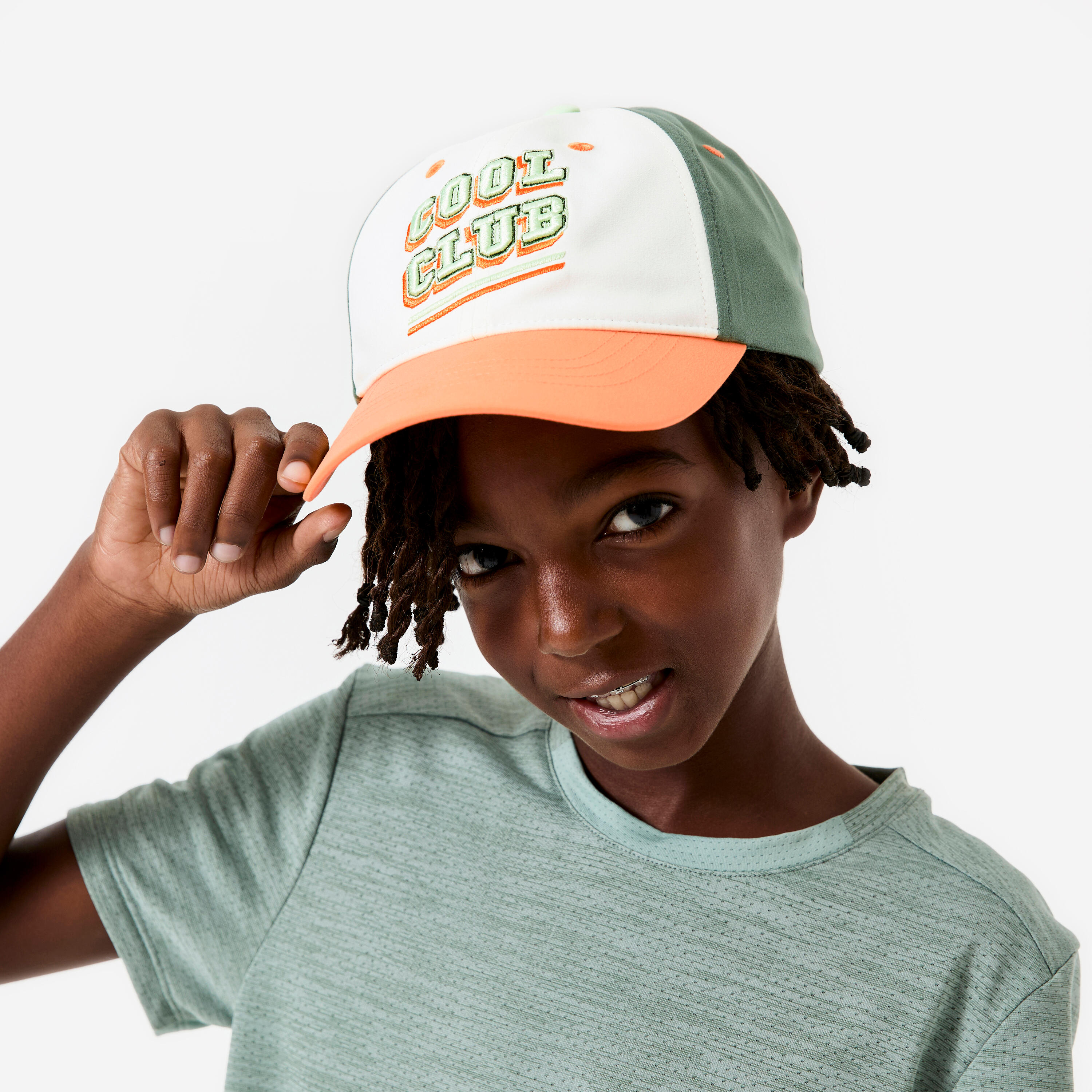 Παιδικό Unisex Διαπνέον και Ρυθμιζόμενο Καπέλο - Λευκό/Πράσινο/Πορτοκαλί