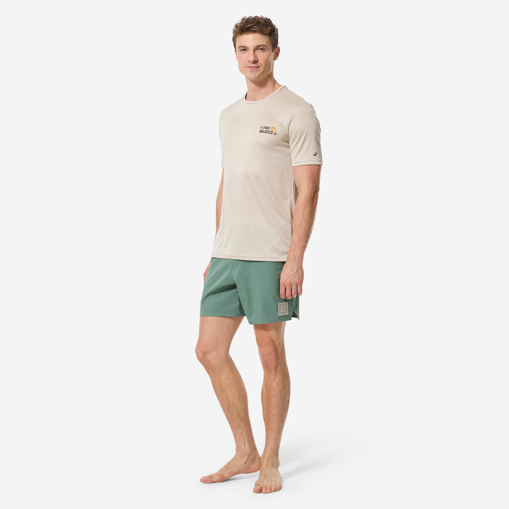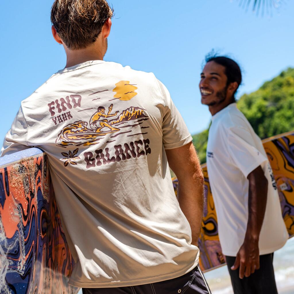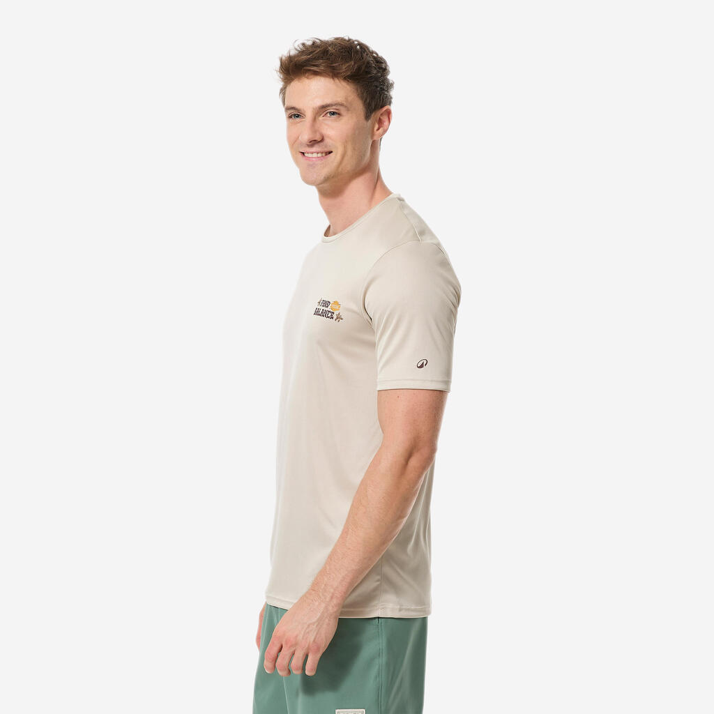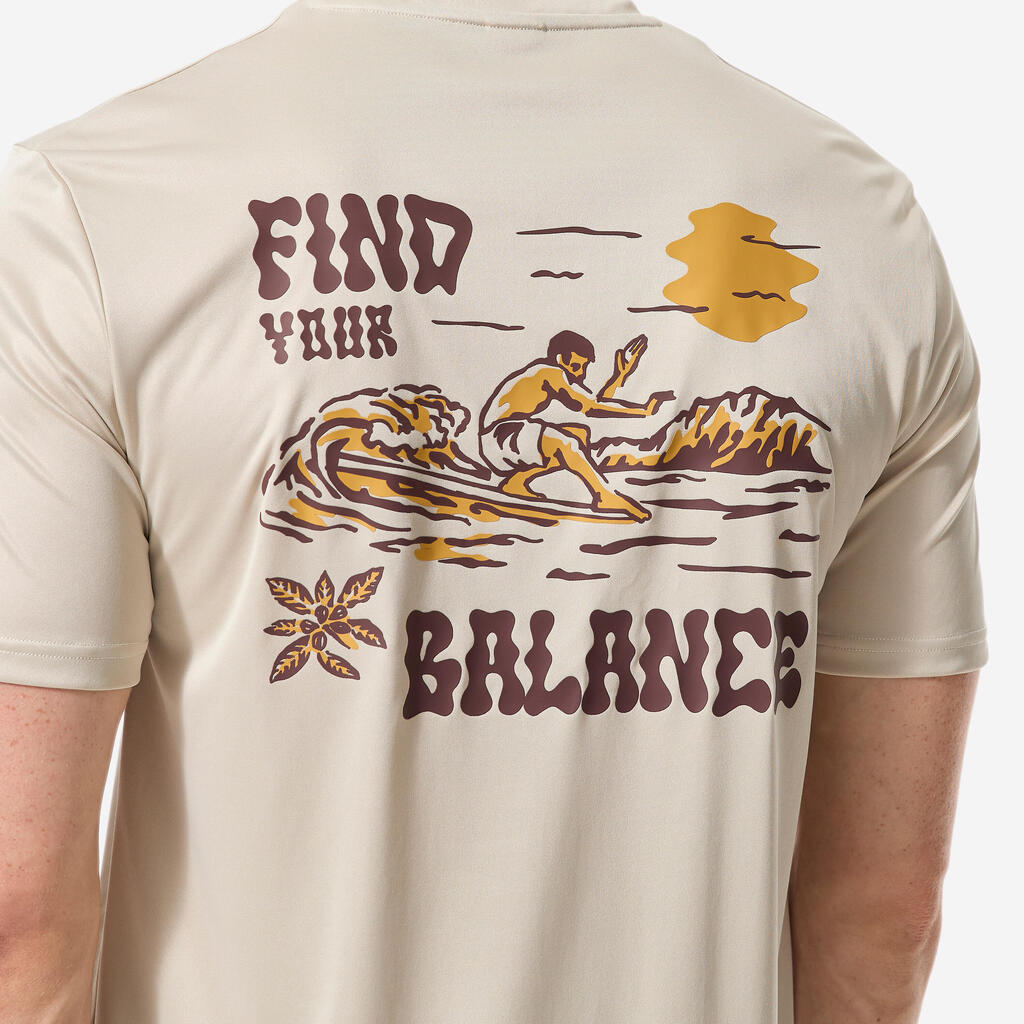 Ανδρικό κοντομάνικο μπλουζάκι surf με προστασία UV - Μπεζ με στάμπα
