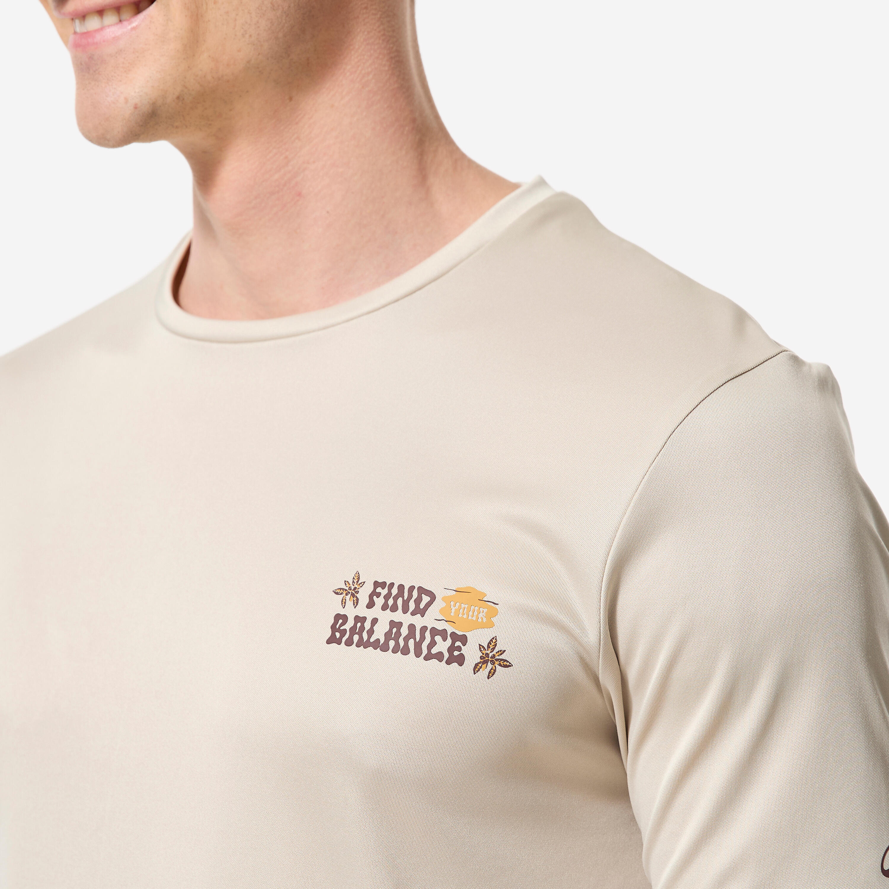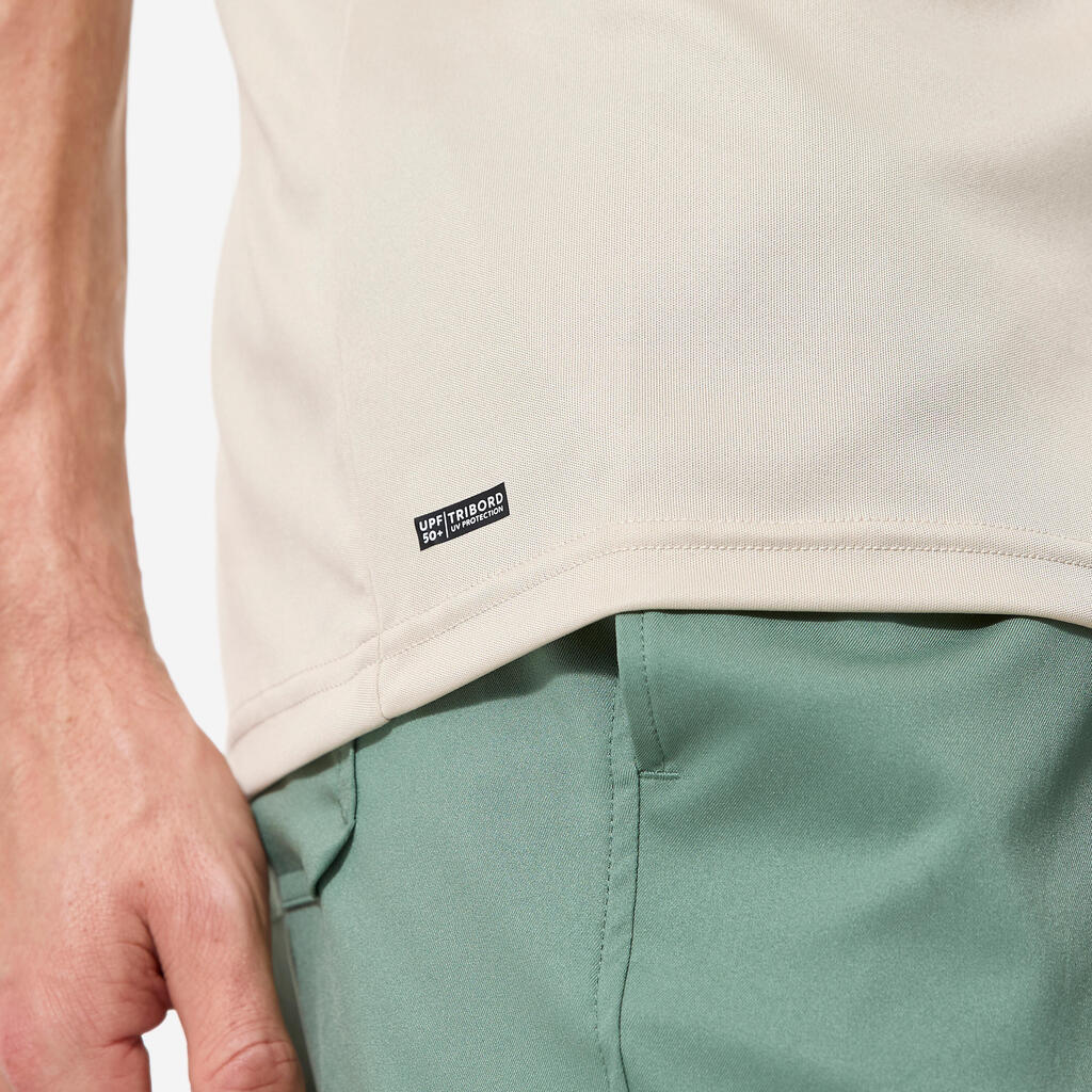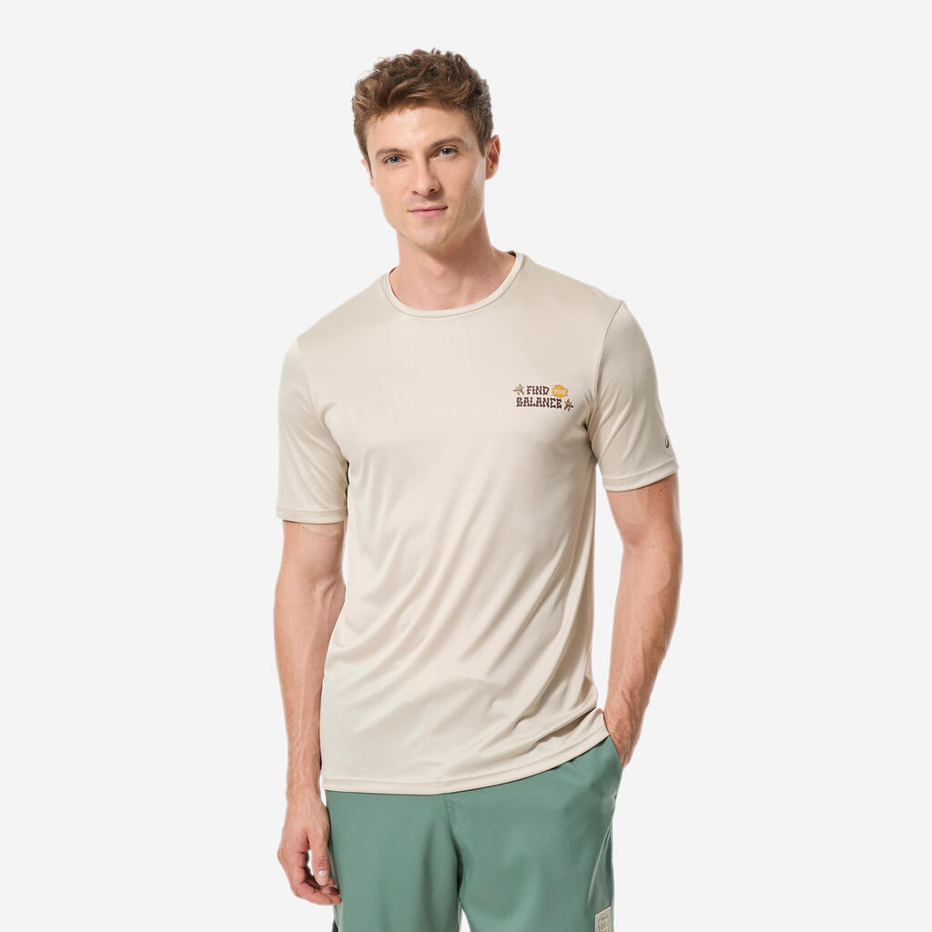 Ανδρικό κοντομάνικο μπλουζάκι surf με προστασία UV - Μπεζ με στάμπα