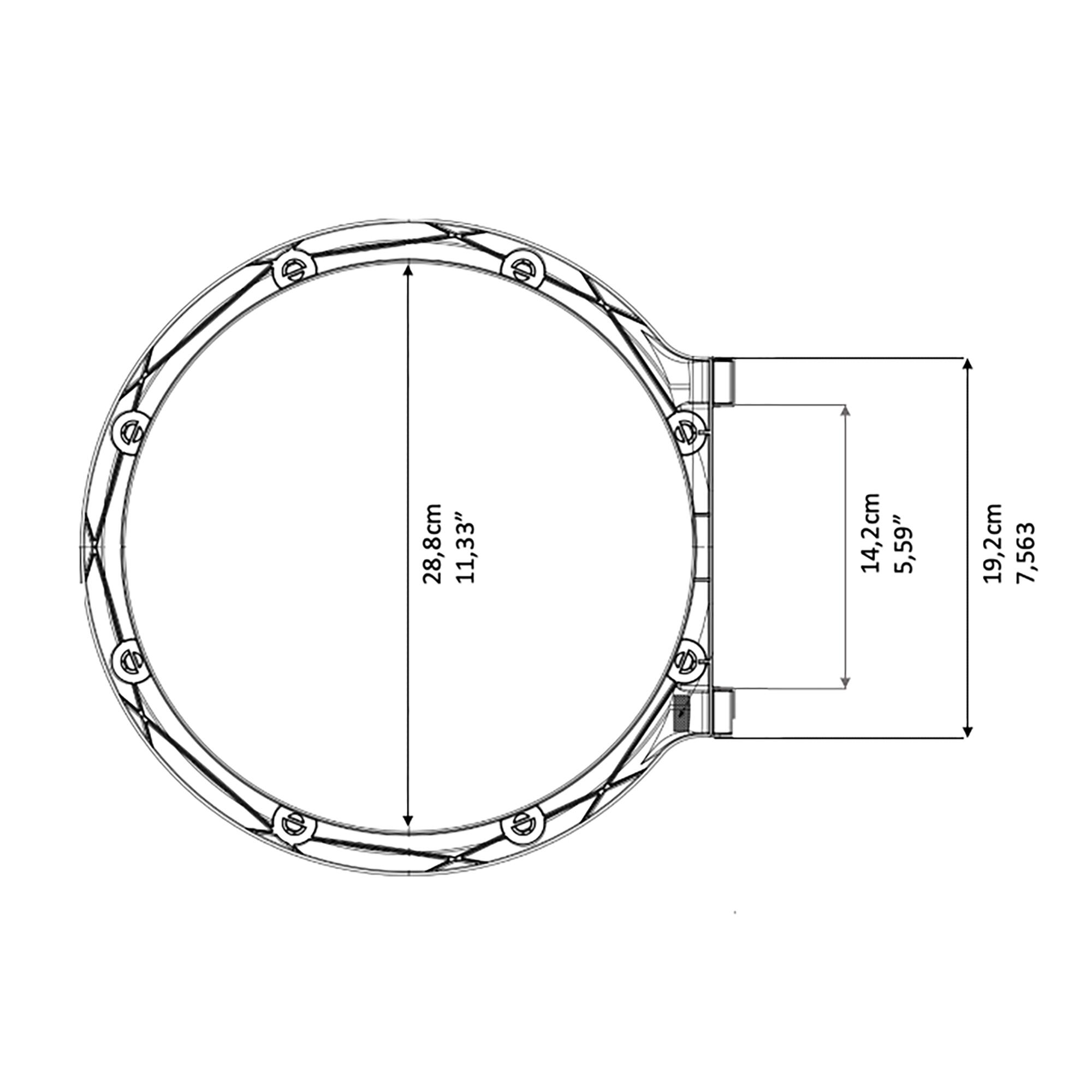 Διάμετρος: 28,8 cm / 11,33" Μήκος μεταξύ βιδών: 14,2 cm / 5,59"