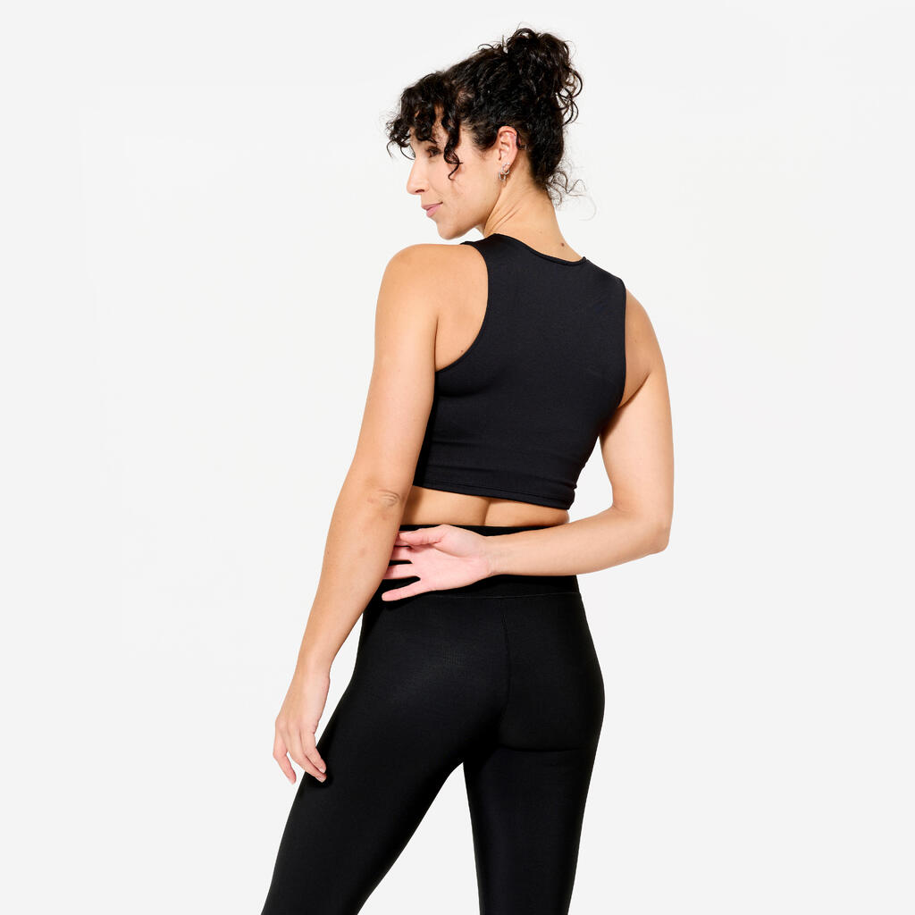 Γυναικείο Αθλητικό Crop Αμάνικο Μπλουζάκι - Μαύρο