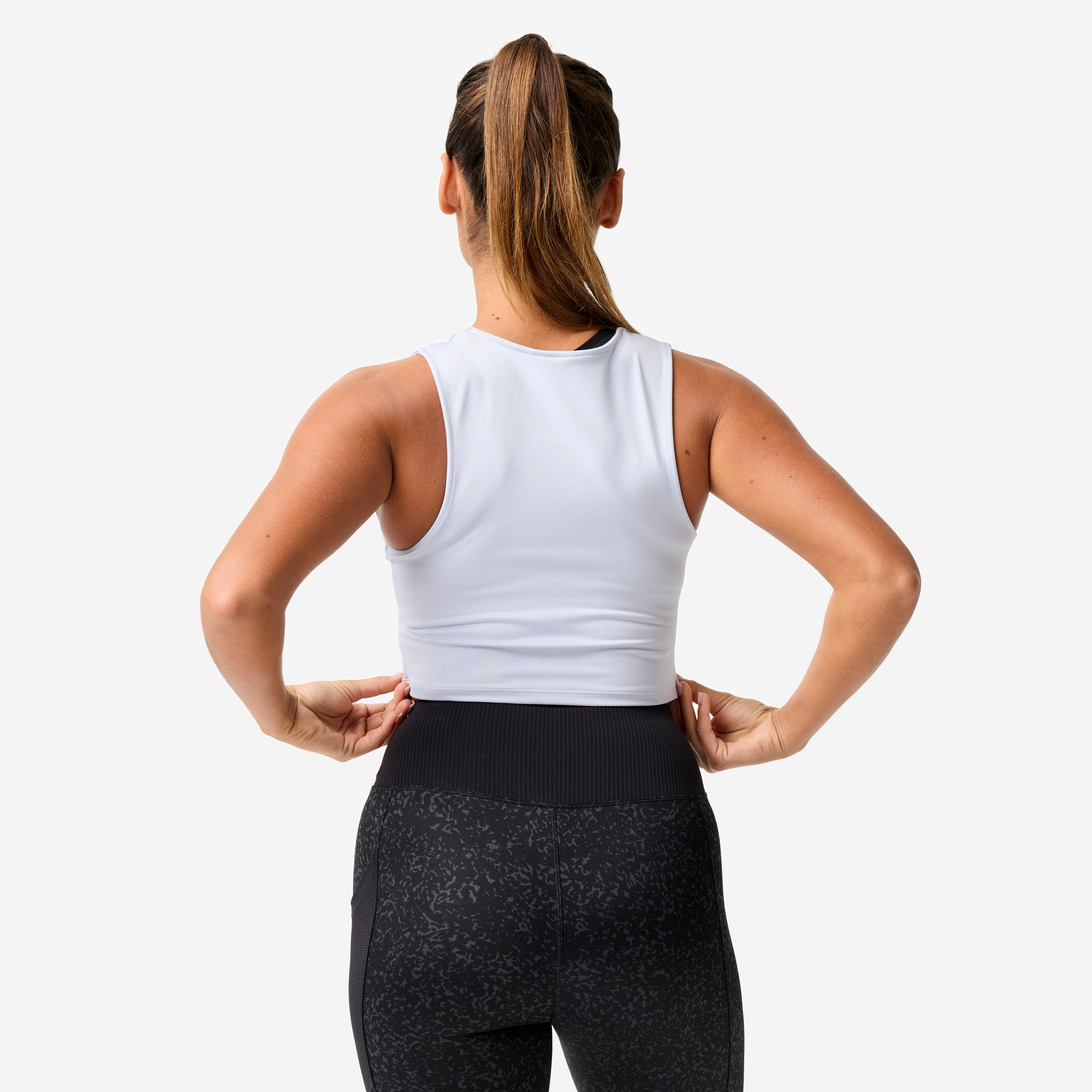 Το αμάνικο μπλουζάκι της σεζόν! Η crop γραμμή του συνδυάζεται με την άνεση του διαπνέοντος ελαστικού υφάσματος και την ψηλή λαιμόκοψη. Φορέστε το πάνω από ένα αθλητικό σουτιέν!