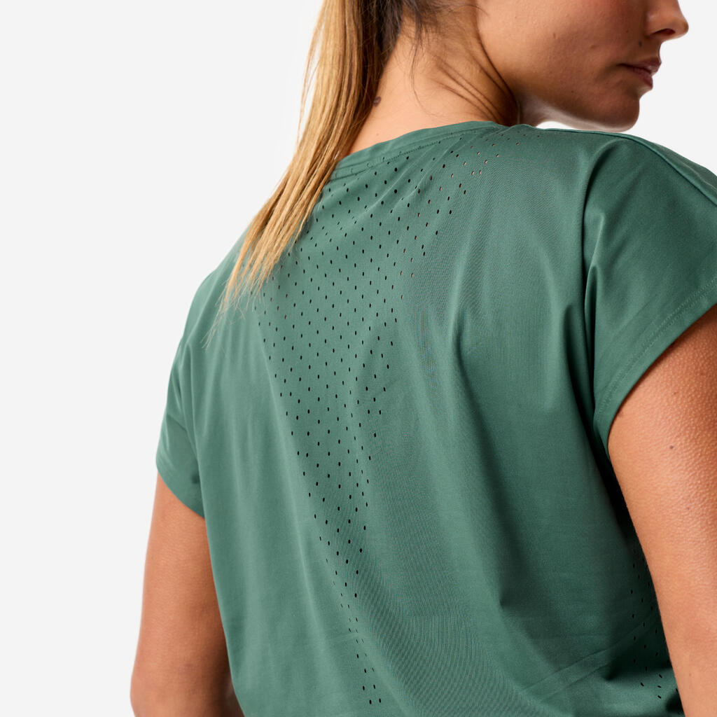 Αυτό το ελαστικό, διαπνέον t-shirt σε φαρδιά γραμμή είναι σχεδιασμένο για όσες θέλουν να νιώθουν άνετα όσο ασκούνται χωρίς να θυσιάζουν το στιλ τους.
