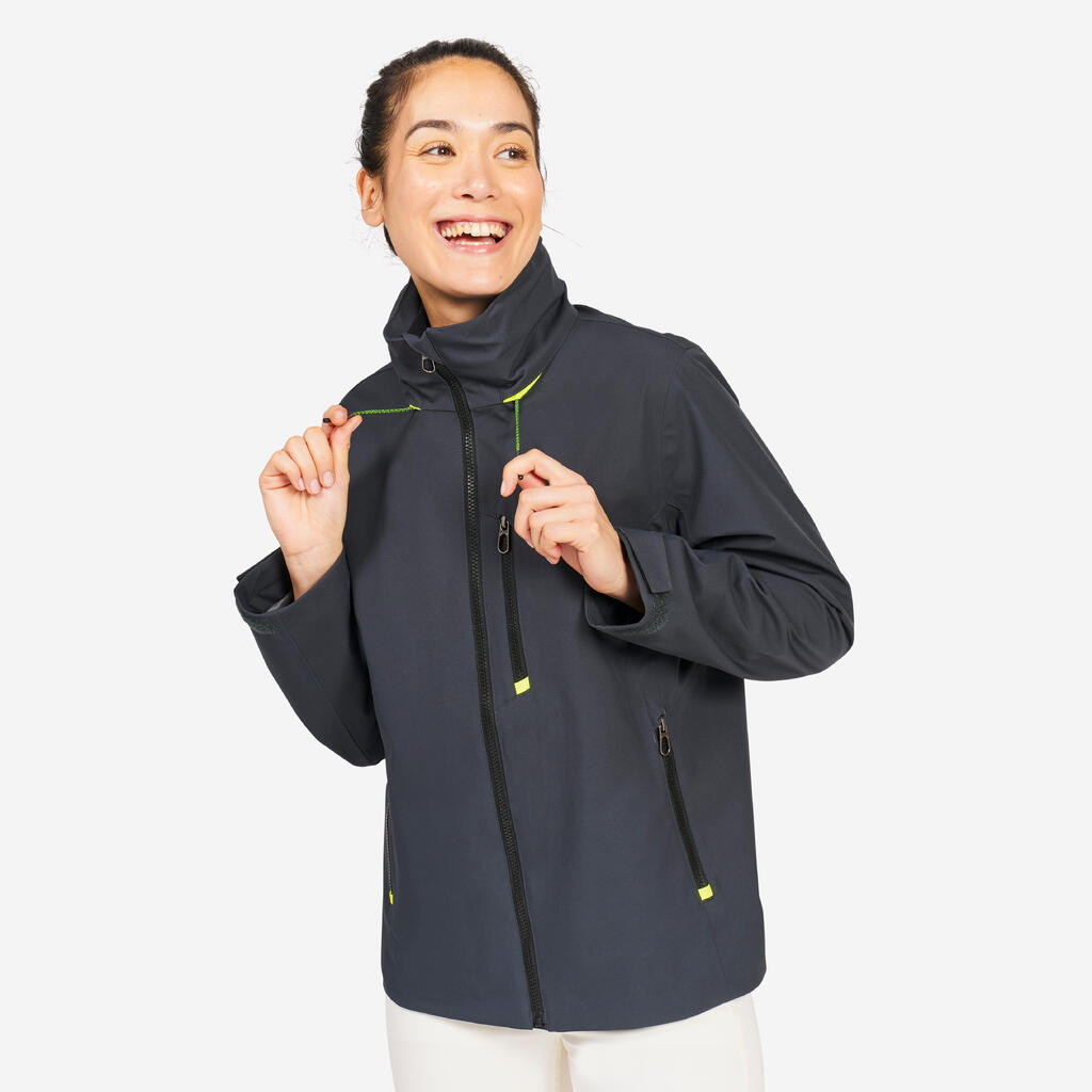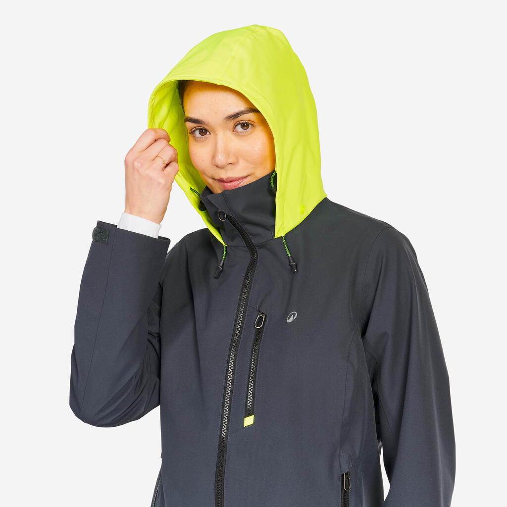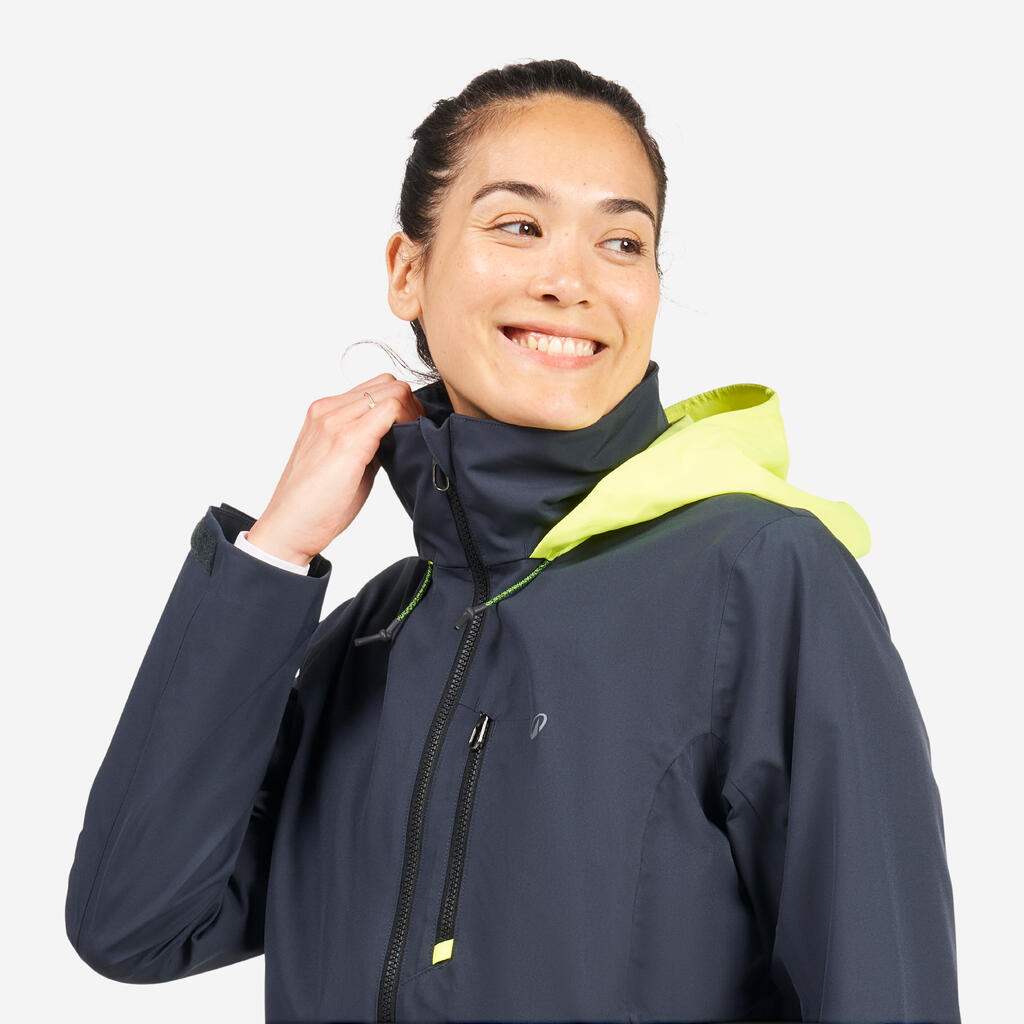 Γυναικείο αδιάβροχο μπουφάν ιστιοπλοΐας Sailing 500-Σκούρο γκρι/Κίτρινη κουκούλα