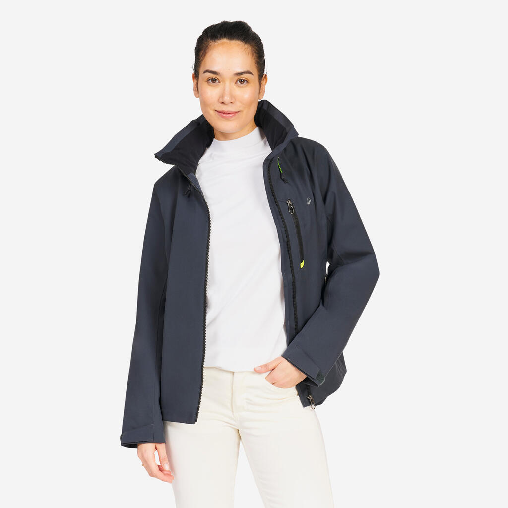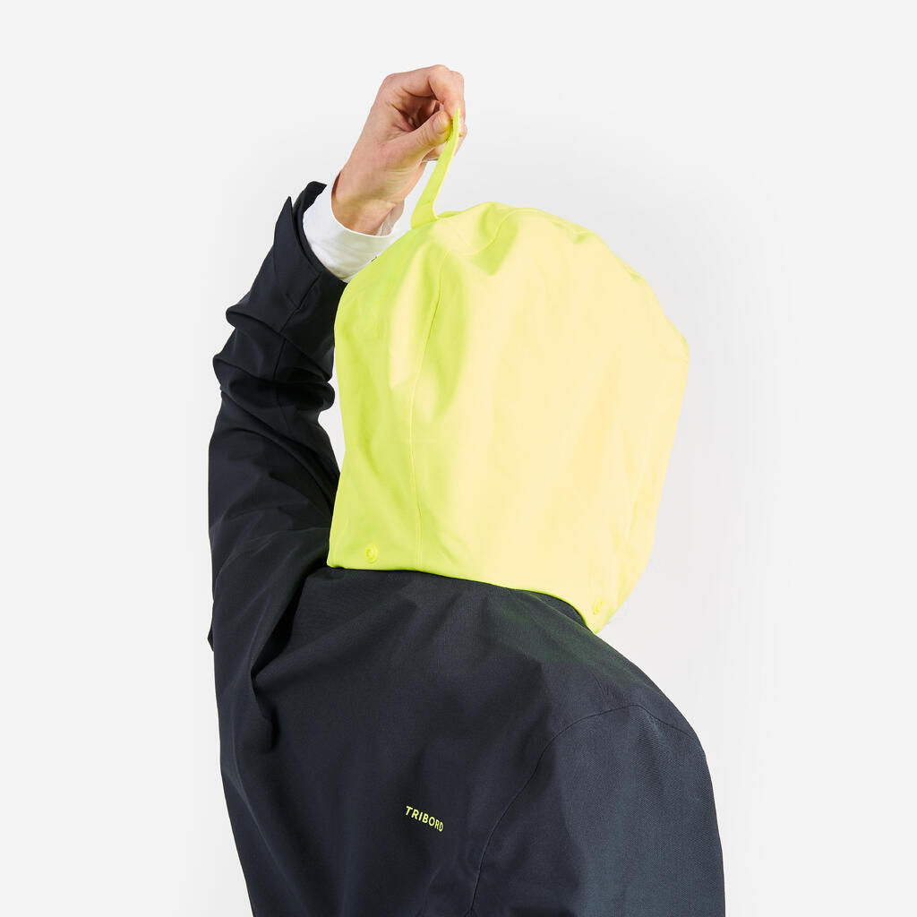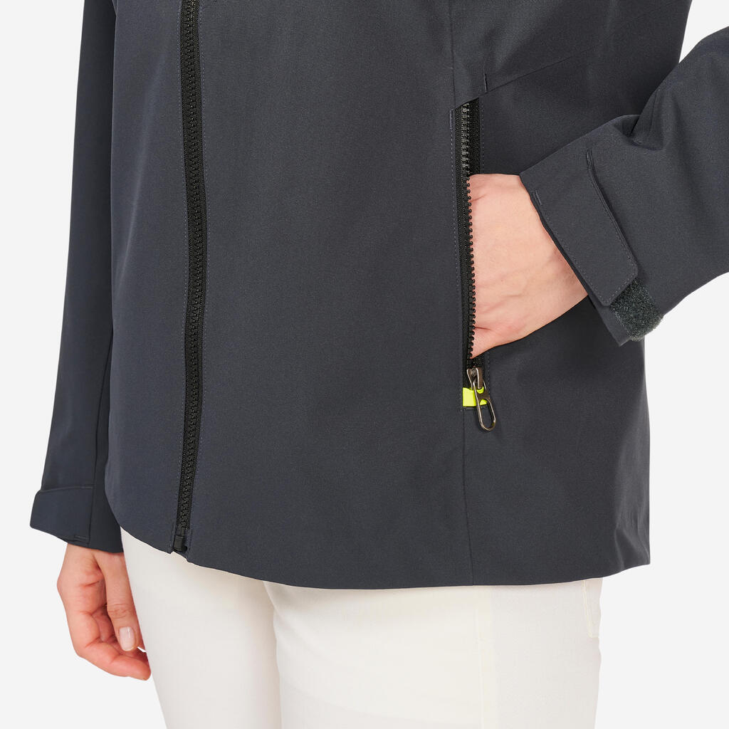 Γυναικείο αδιάβροχο μπουφάν ιστιοπλοΐας Sailing 500-Σκούρο γκρι/Κίτρινη κουκούλα