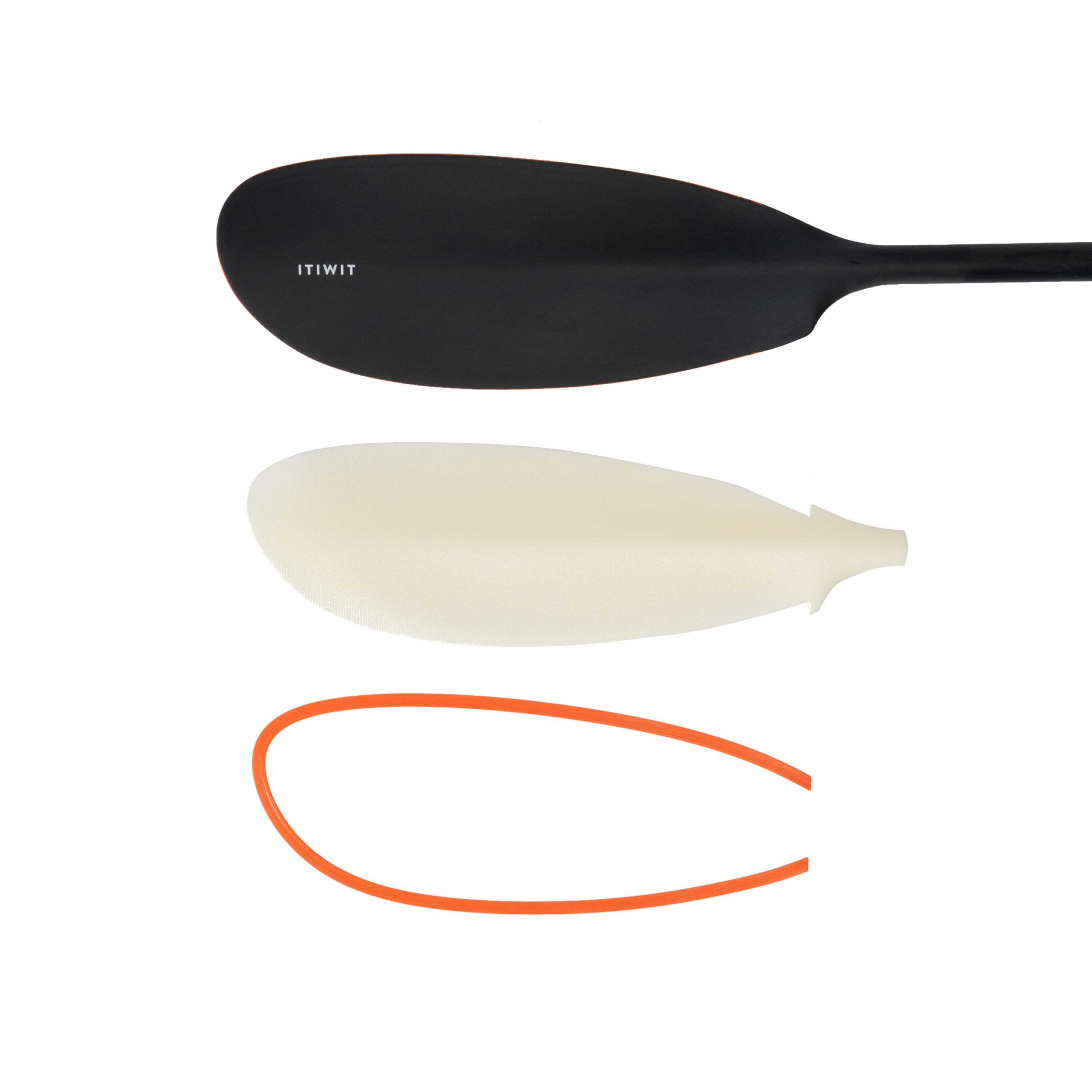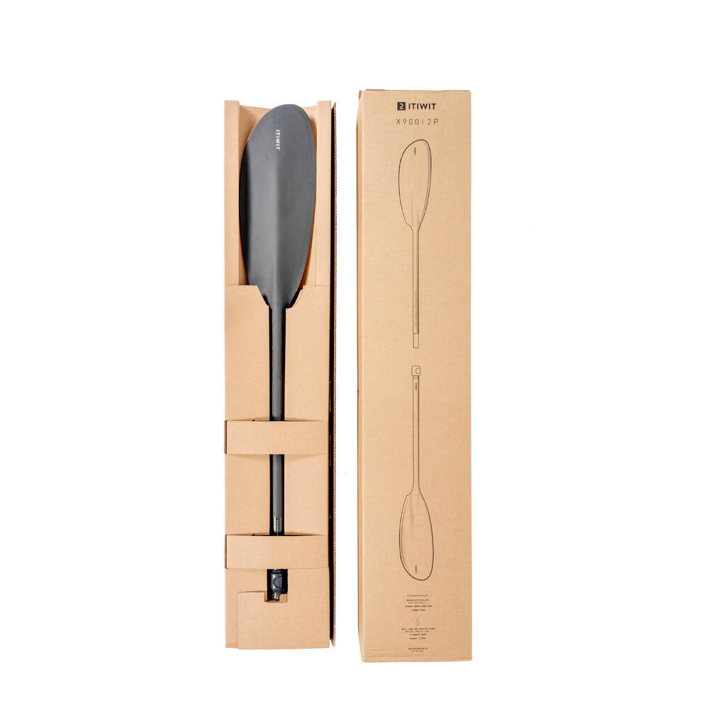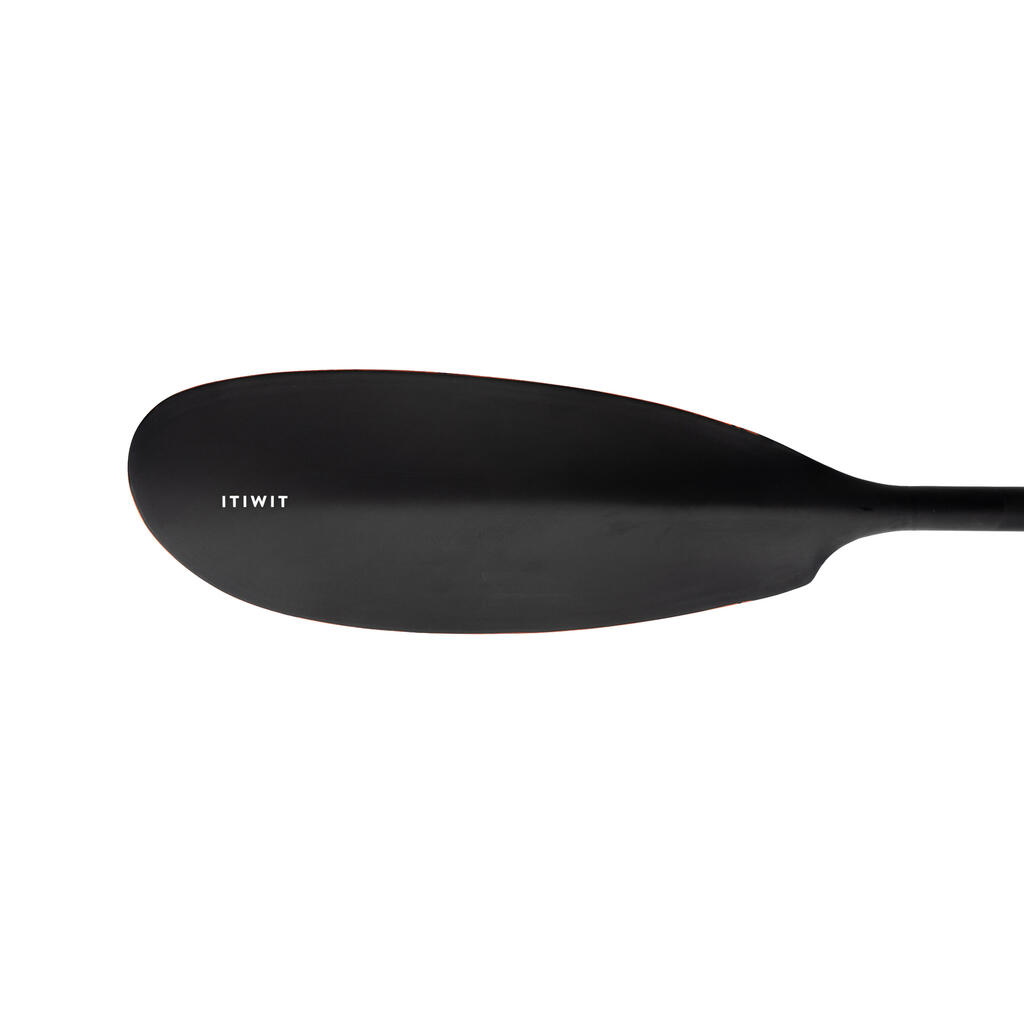 Αυτό το ελαφρύ κουπί 670 g μπορεί να αποσυναρμολογηθεί: 2 μέρη ρυθμιζόμενης γωνίας και μήκους (210-220 cm). Μεγάλη άνεση χάρη στη διπλή λαβή και στις αφρώδεις λάμες στα σημεία επαφής με το νερό.