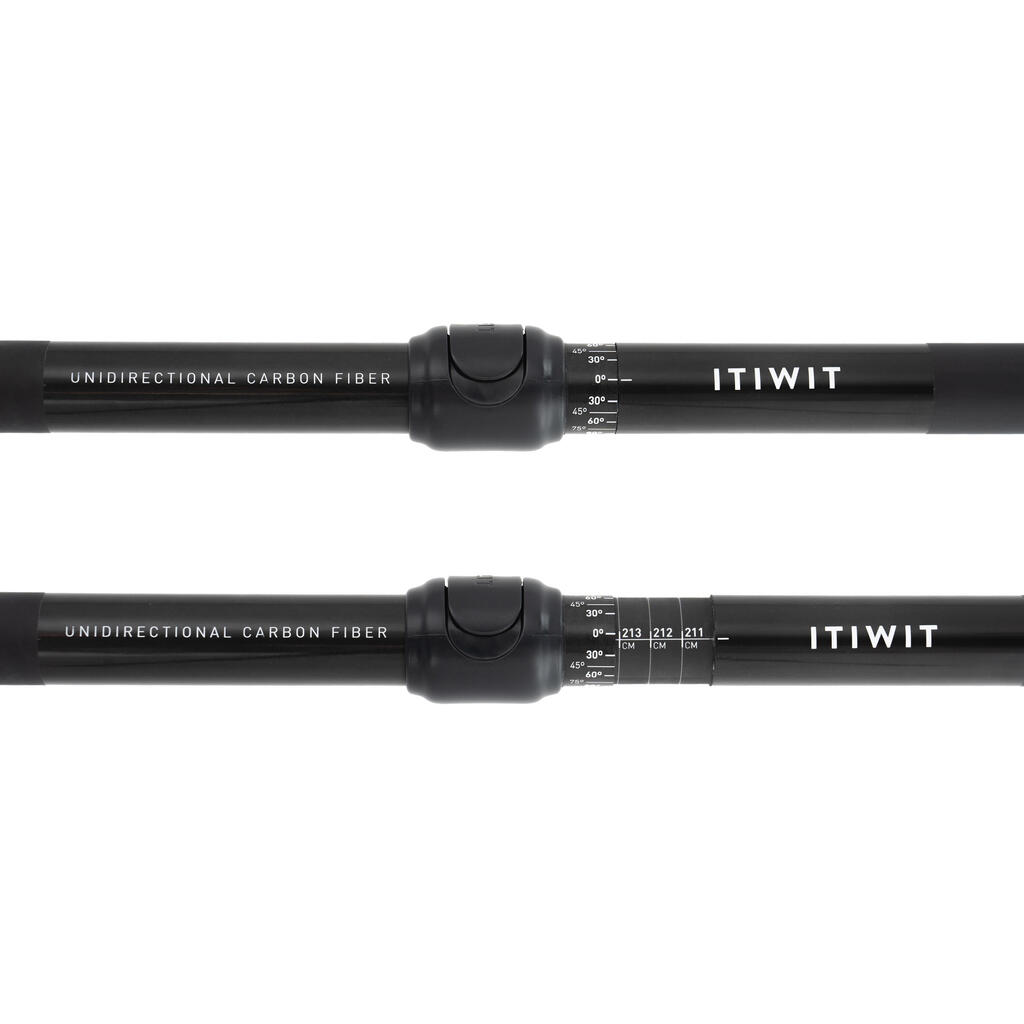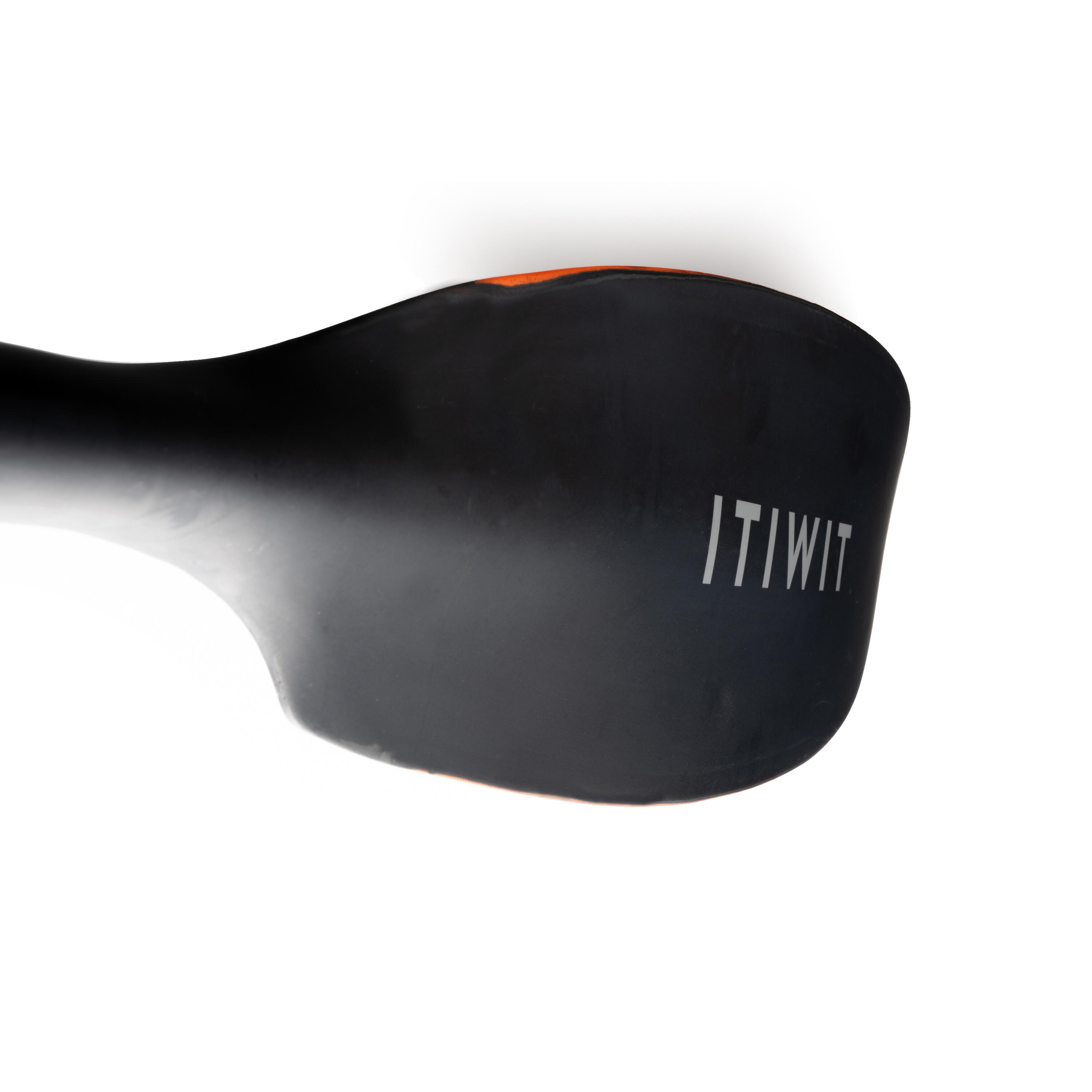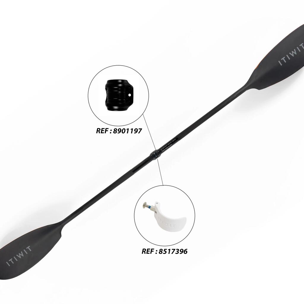 Αυτό το ελαφρύ κουπί 670 g μπορεί να αποσυναρμολογηθεί: 2 μέρη ρυθμιζόμενης γωνίας και μήκους (210-220 cm). Μεγάλη άνεση χάρη στη διπλή λαβή και στις αφρώδεις λάμες στα σημεία επαφής με το νερό.