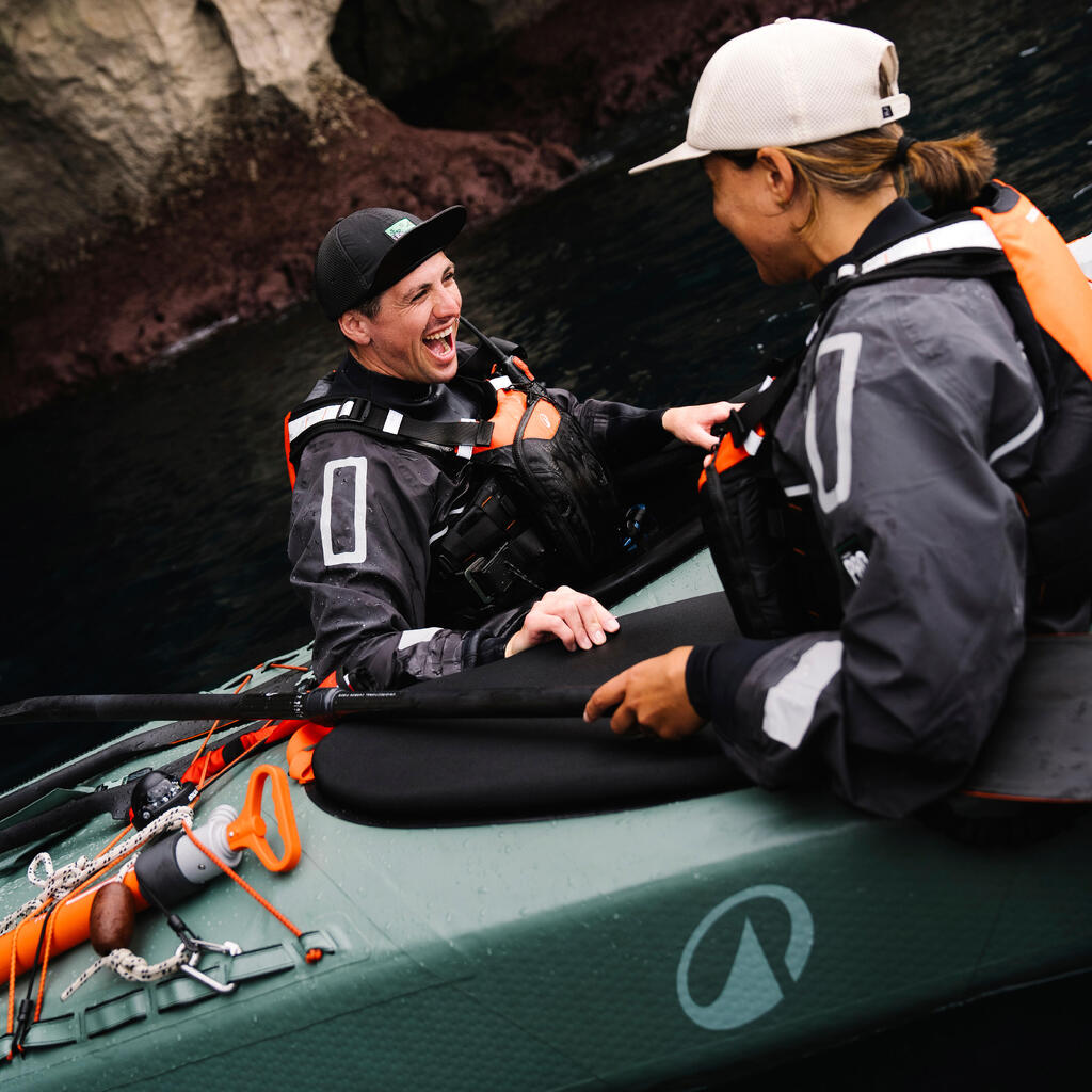 - Το κύτος είναι πλήρως κατασκευασμένο από Dropstitch και τα εύκαμπτα καταστρώματα επιτρέπουν στο καγιάκ μήκους 5 μέτρων να χωράει σε ένα σακίδιο.