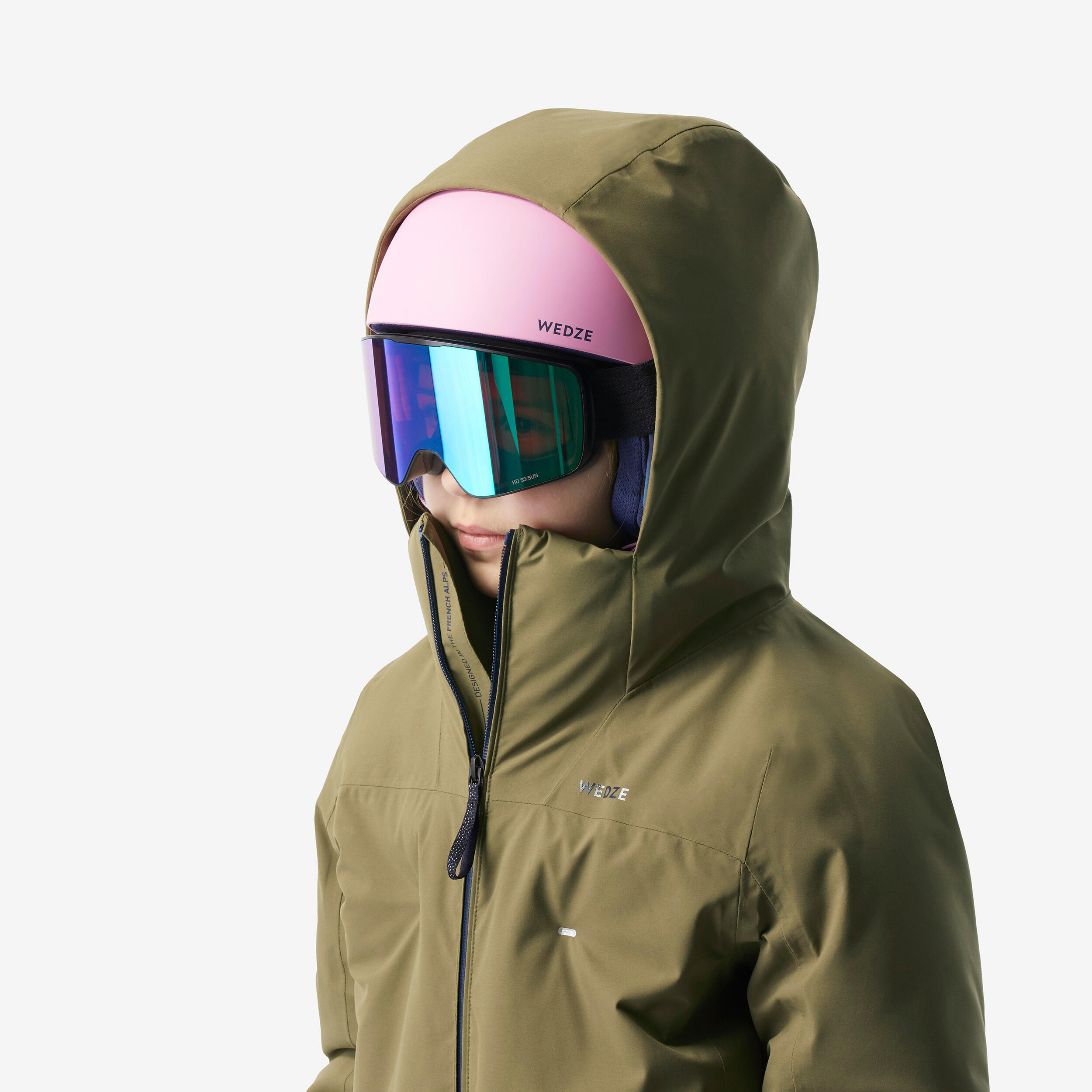 Παιδικό ζεστό και αδιάβροχο μπουφάν σκι με επένδυση, 6-14 ετών, 500 WARM - Χακί