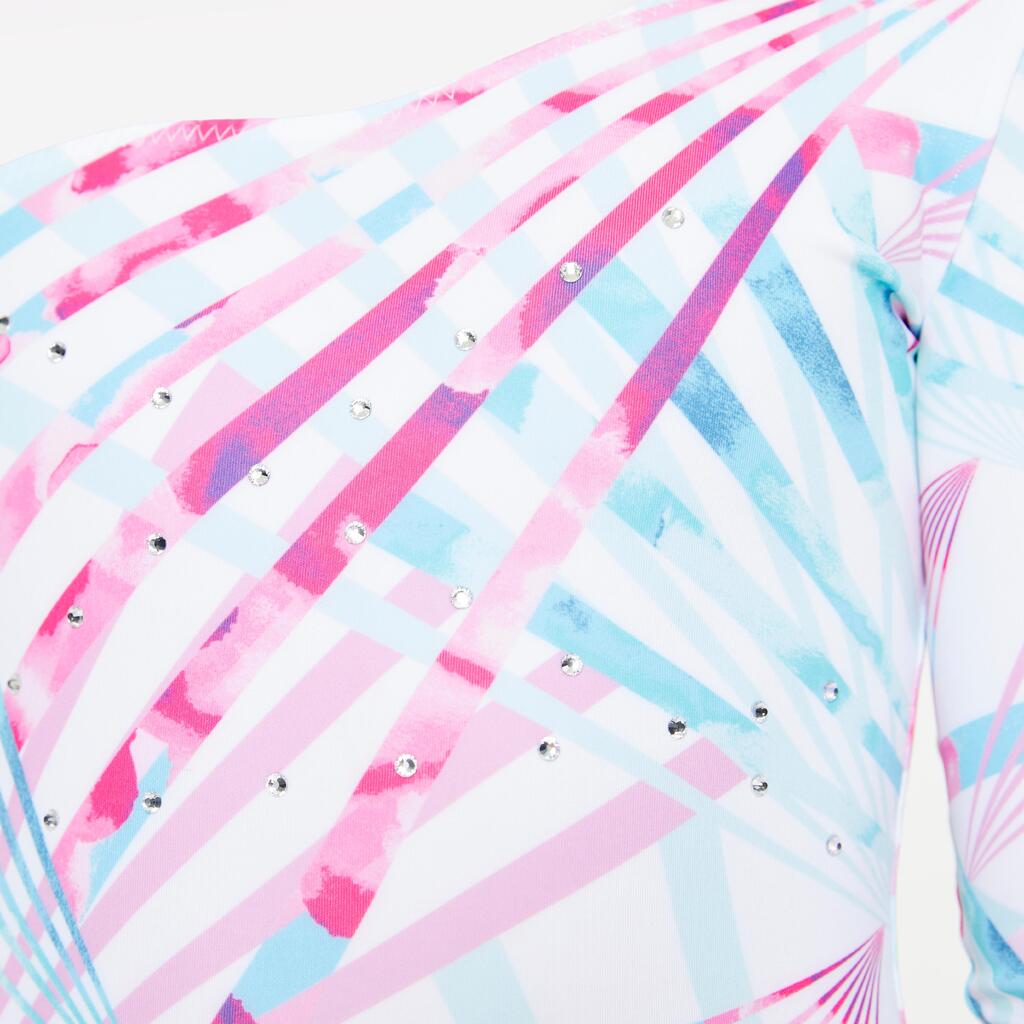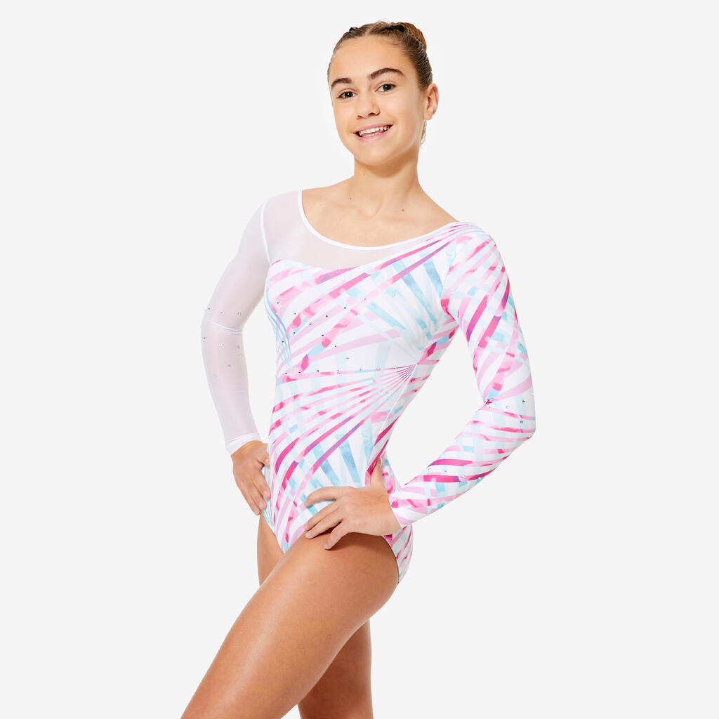 Μακρυμάνικο κορμάκι γυμναστικής με στρας για κορίτσια - Λευκό τύπωμα