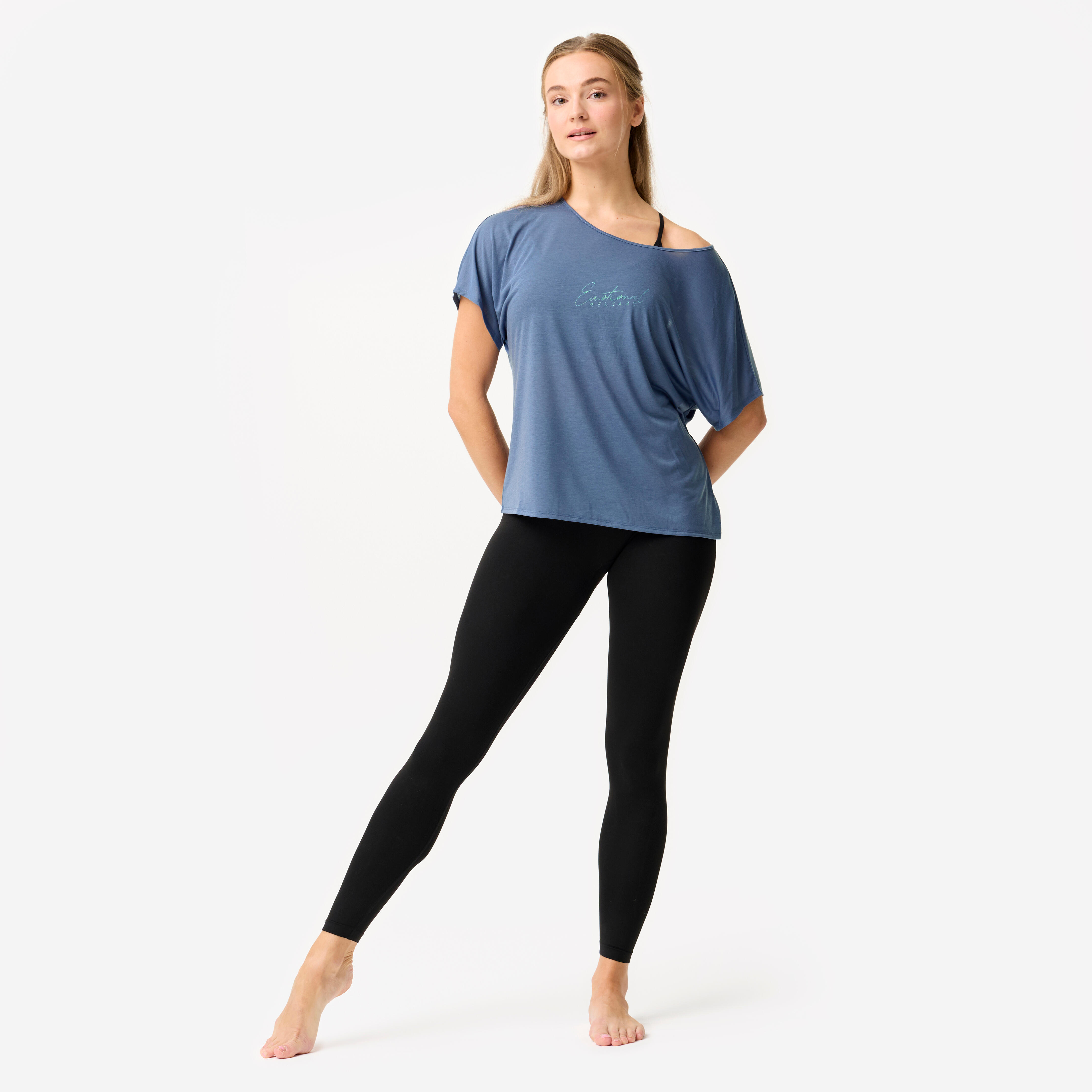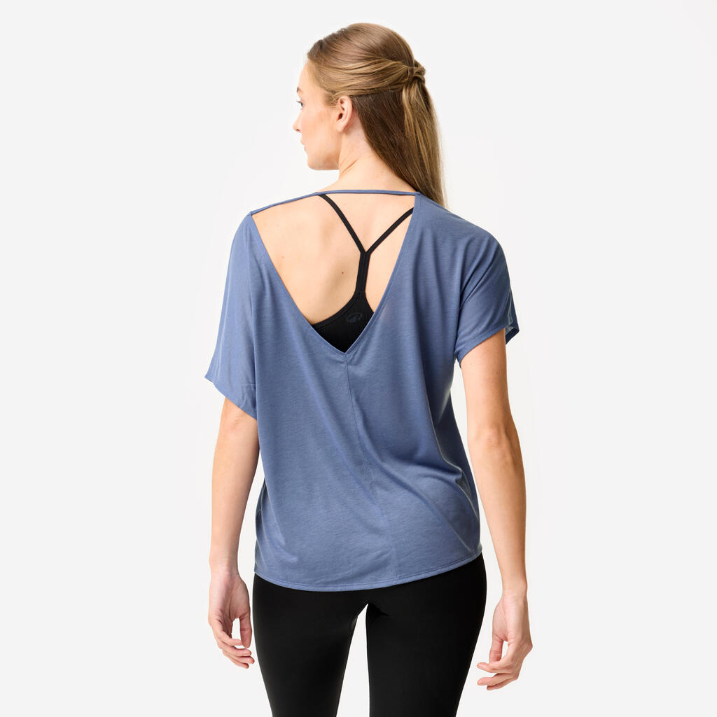 Δημιουργήσαμε αυτό το κοντομάνικο T-shirt με λαιμόκοψη V στην πλάτη, που χαρίζει στις χορεύτριες σοφιστικέ, κομψή εμφάνιση.