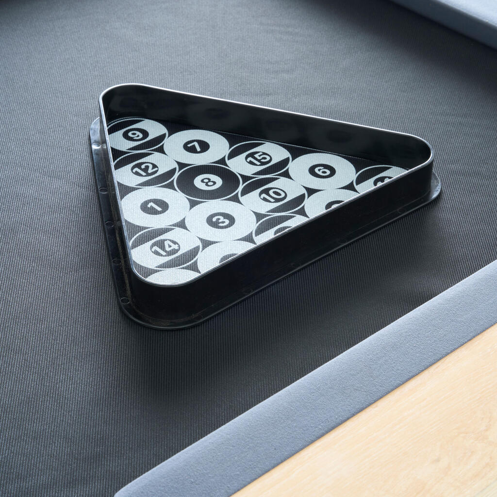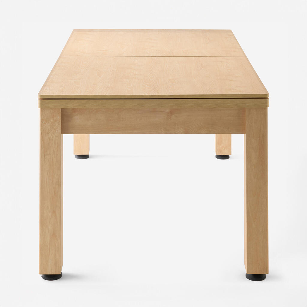 Το τραπέζι μπιλιάρδου μετατρέπεται σε τραπεζαρία μέσα σε 2 λεπτά. Κουμπώστε τις δύο πλάκες της επιφάνειας αφού τοποθετήσετε όλα τα αξεσουάρ στο κέντρο του τραπεζιού. Χρησιμοποιείτε τραπεζομάντιλο ή σουπλά για προστασία από γρατσουνιές.