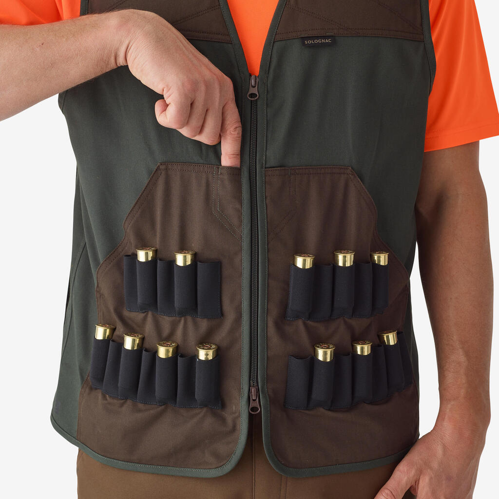 Χάρη στα ενισχυμένα ένθετα στους ώμους, σάς επιτρέπει να κινείστε ελεύθερα σε οποιονδήποτε βιότοπο. Διαθέτει τσέπη θηραμάτων και 24 θήκες για 12βολα, 16βολα και 20βολα φυσίγγια.
