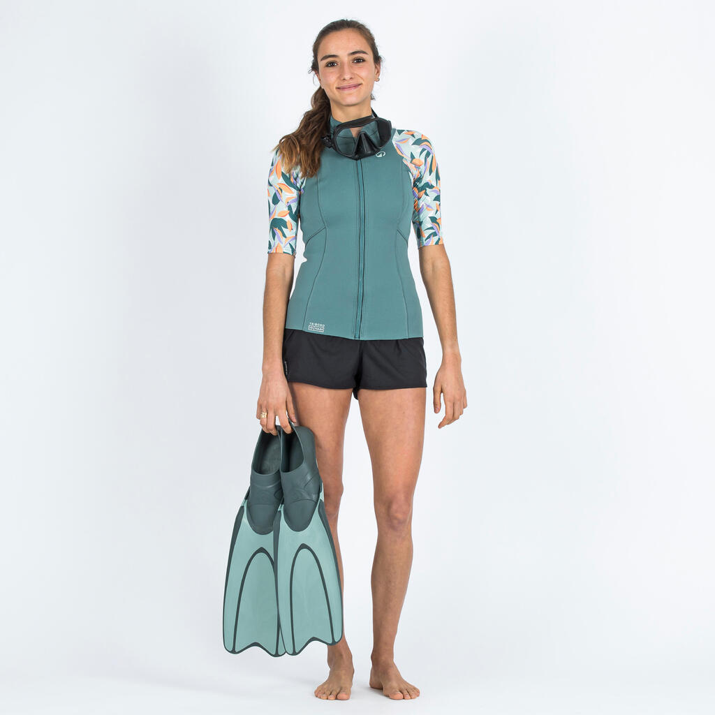 Το γυναικείο μπλουζάκι YULEX100 για snorkelling προσφέρει αντηλιακή προστασία UPF 50. Το υλικό YULEX100 είναι ένα 100% φυσικό καουτσούκ.
