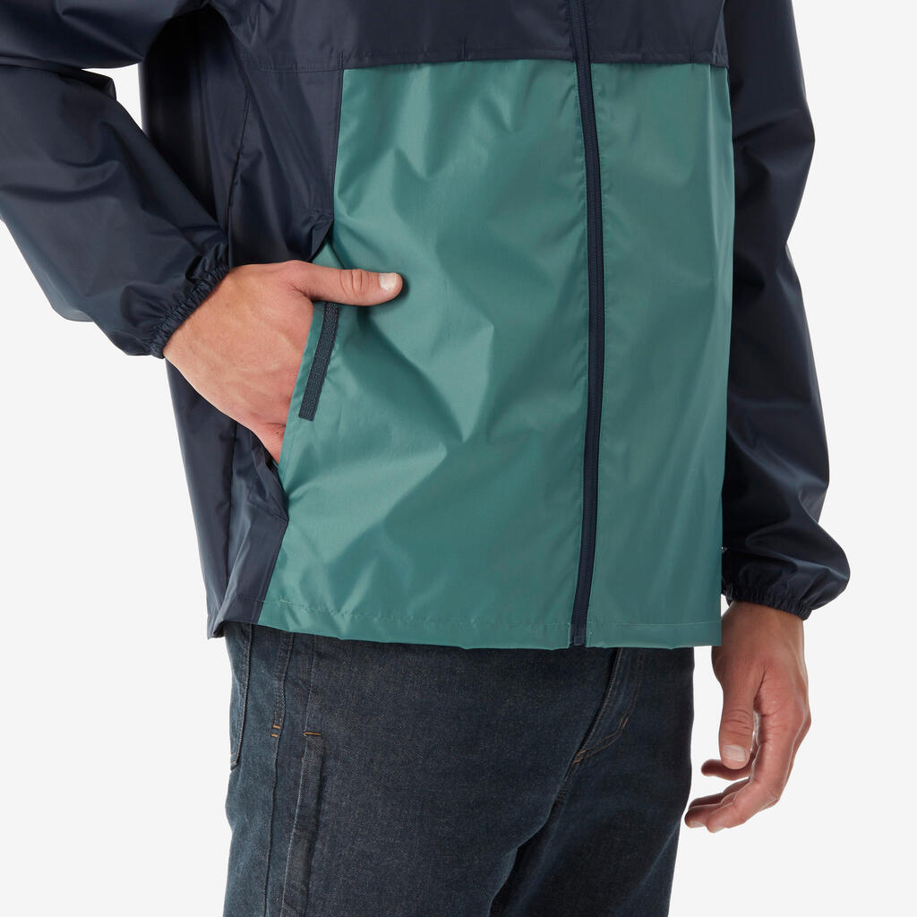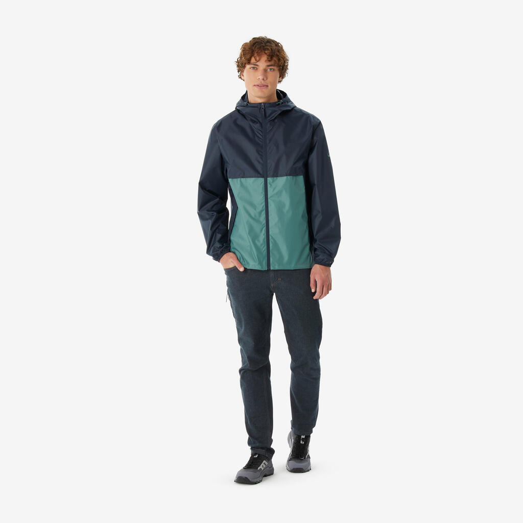 Ανδρικό Αντιανεμικό και Αδιάβροχο Μπουφάν Πεζοπορίας, Raincut με Φερμουάρ - Μπλε