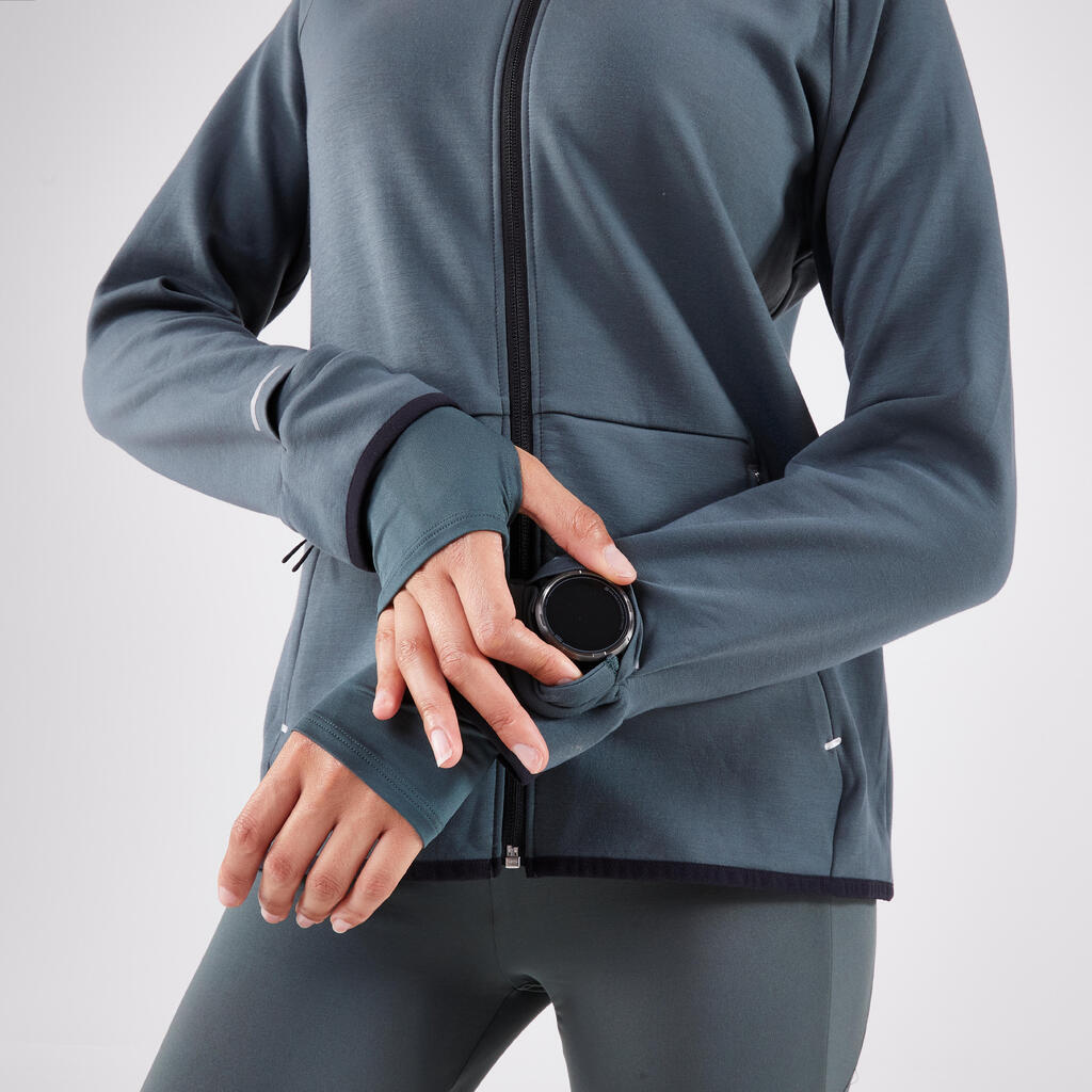 Γυναικείο Ζεστό Μπουφάν Τρεξίματος - KIPRUN Run 500 Warm - Smoky green